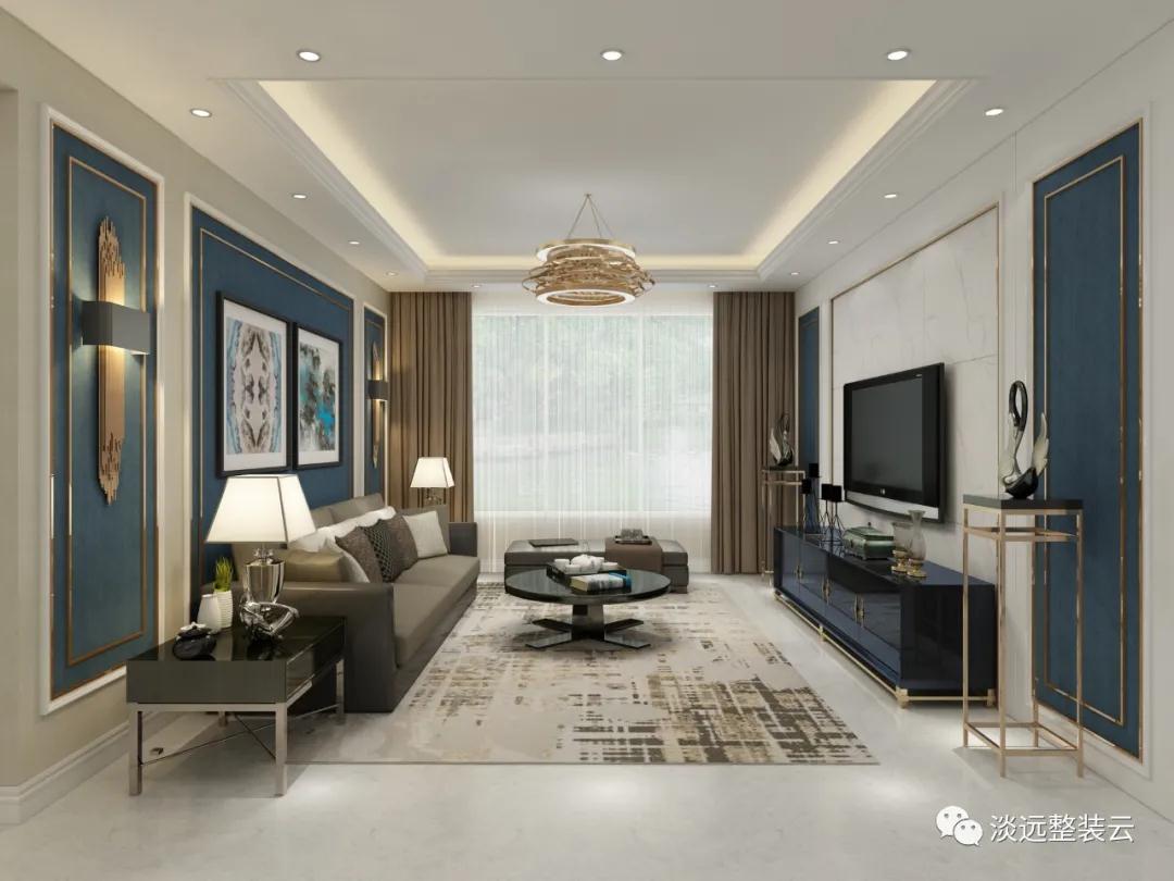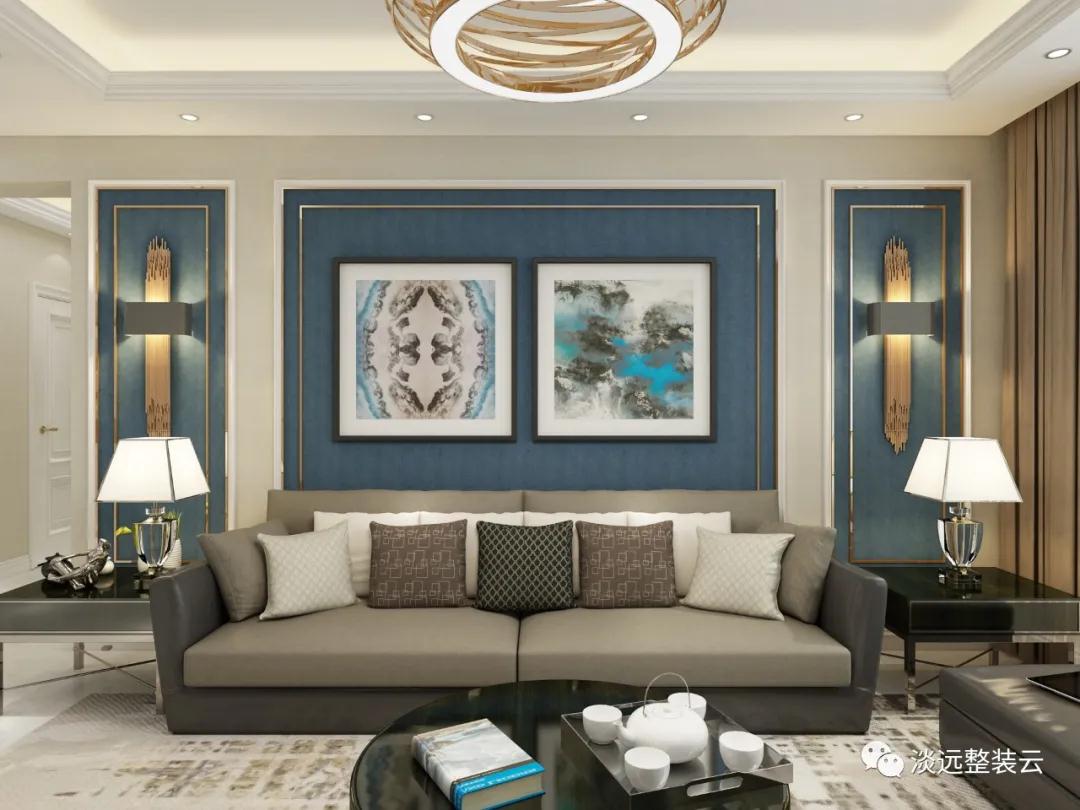 1、室內(nèi)最能代表家庭門面的位置就是客廳,為了不讓藍(lán)色的設(shè)計(jì)顯得比較冷寒,這里我們的設(shè)計(jì)師采用了冷暖相宜的色彩相互搭配打造出了居家生活的溫馨感,合理的布局,層次的遞進(jìn),讓裝修在視覺上更具有延伸感。