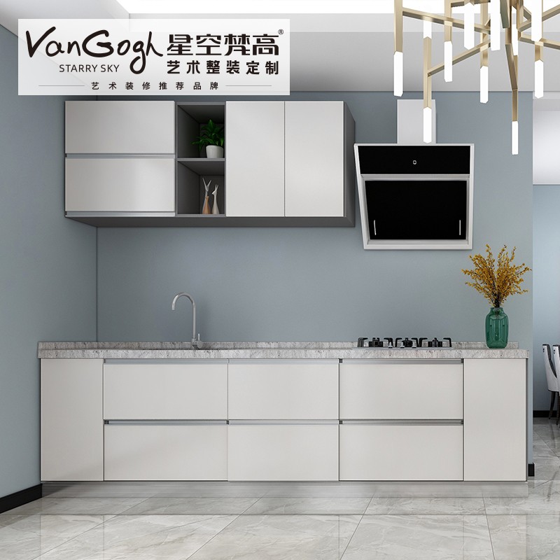 【星空梵高】現(xiàn)代簡約石英石臺(tái)面整體定制櫥柜 梅爾海辛·羊脂白櫥柜