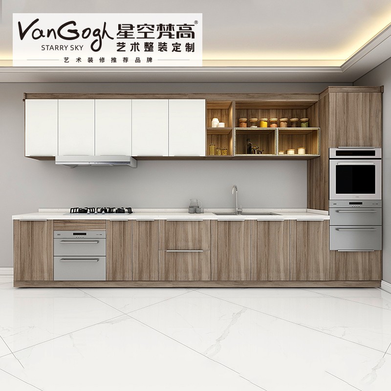 【星空梵高】現代簡約 石英石臺面 整體定制櫥柜 塔特森林·邁阿密胡桃+玉石白櫥柜