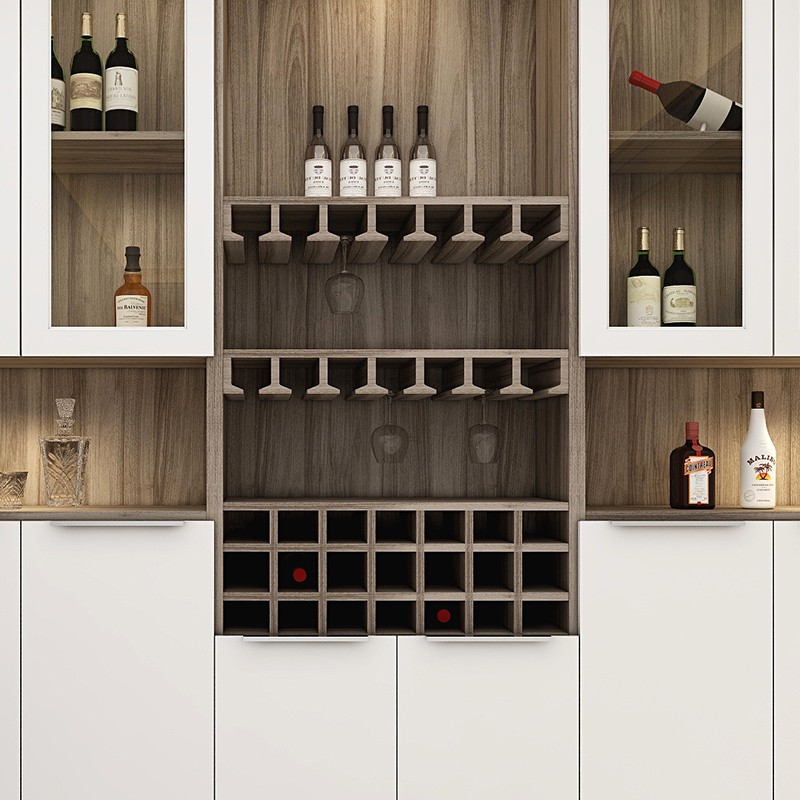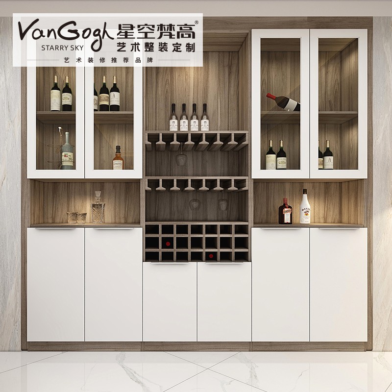 【星空梵高】現(xiàn)代簡約整體定制酒柜 塔特森林·邁阿密胡桃+玉石白酒柜