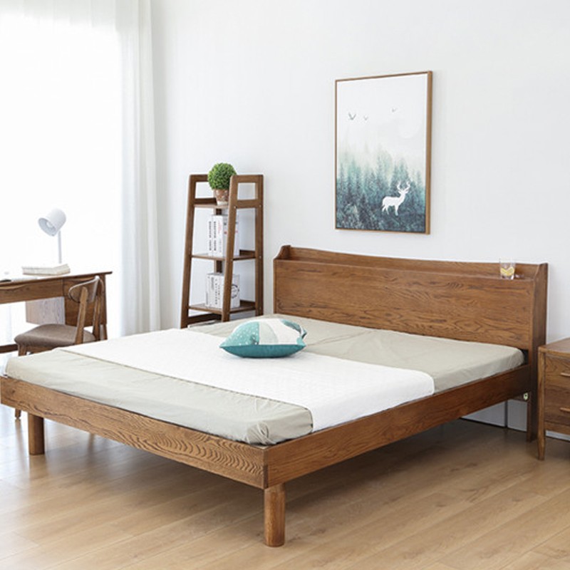 【星空梵高】現(xiàn)代簡約雙人床白橡木床 木色生香 906插座床
