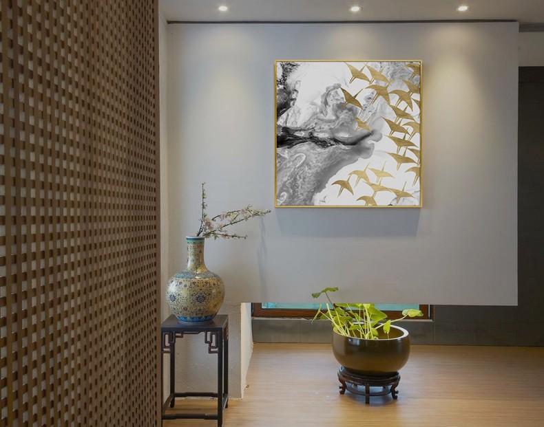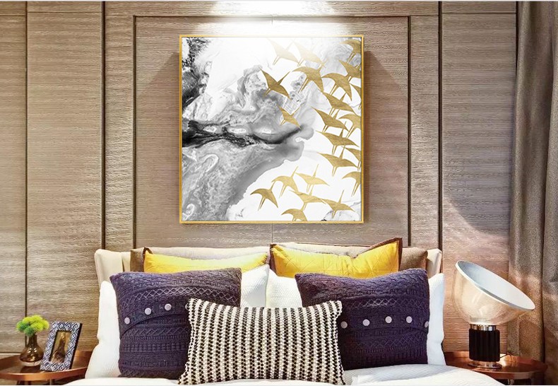 輕奢客廳臥室餐廳走廊玄關掛畫晶瓷畫 純手繪油畫 燕歸巢