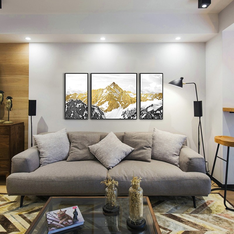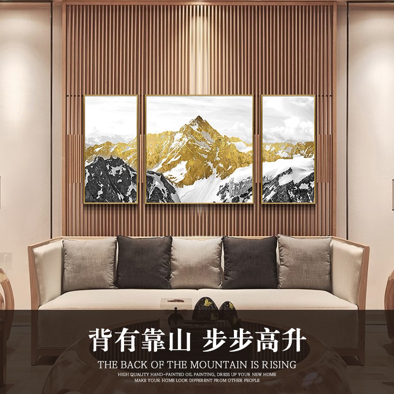 客廳裝飾畫三聯(lián)掛畫沙發(fā)背景墻大氣靠山純手繪油畫 雪山圣景