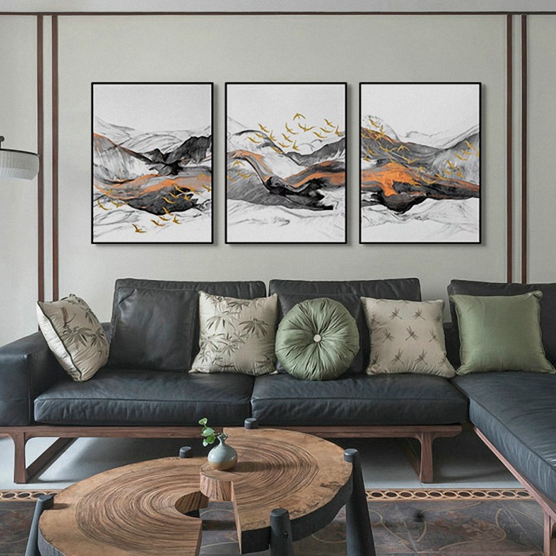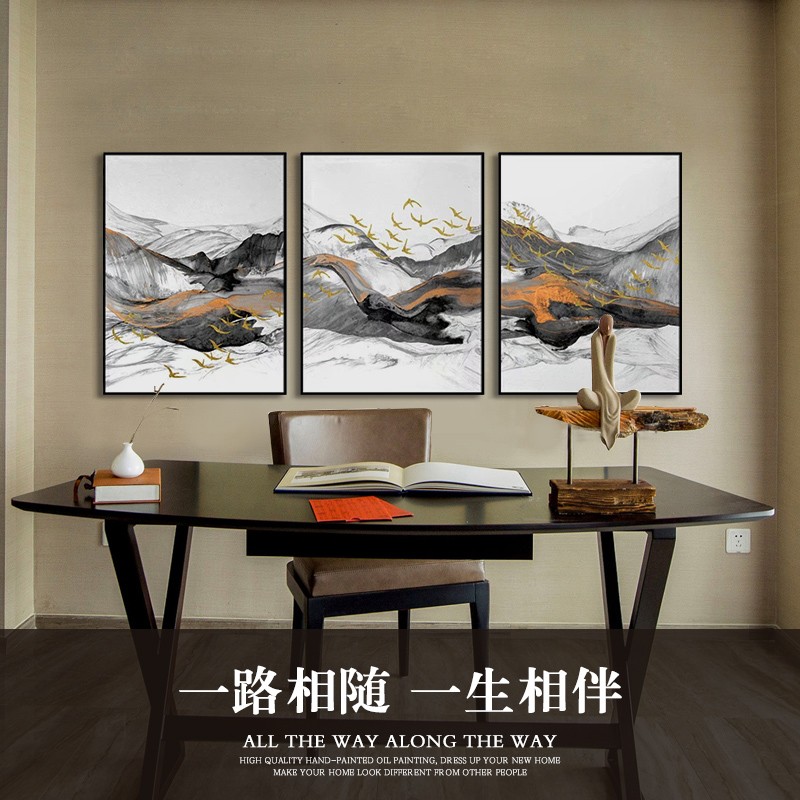 現(xiàn)代簡約客廳三聯(lián)裝飾畫沙發(fā)背景墻組合畫 純手繪油畫 一路相隨