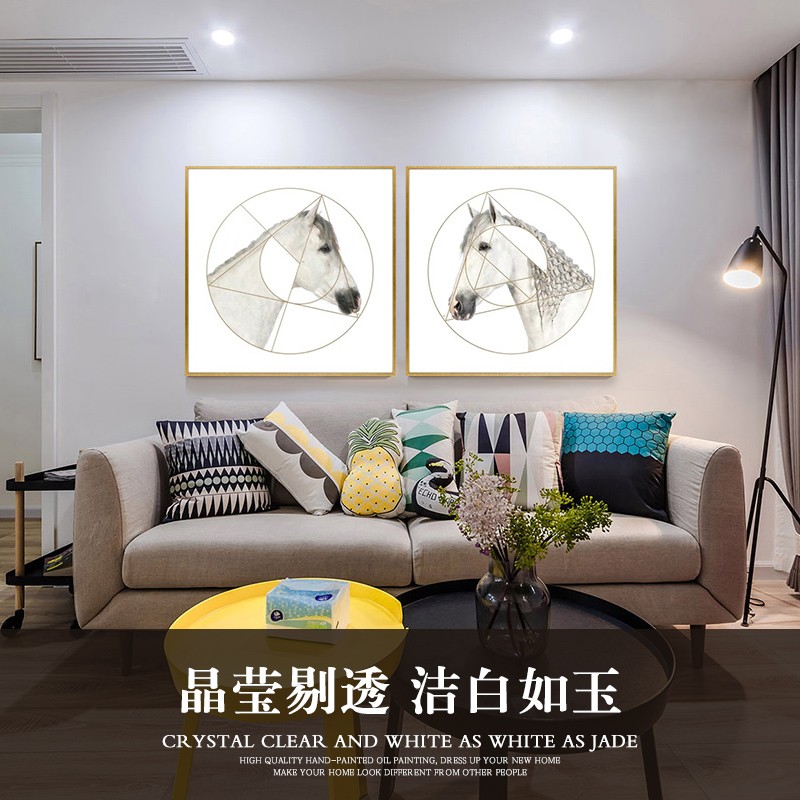 現(xiàn)代簡約幾何圖形壁畫餐廳裝飾畫玄關掛畫晶瓷畫 純手繪油畫 駿馬