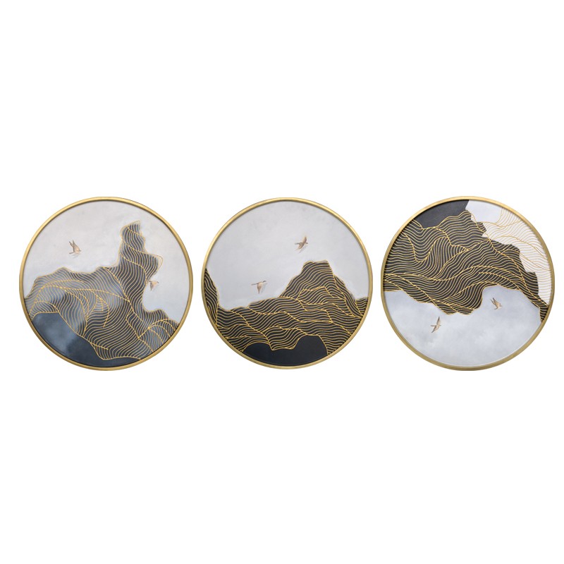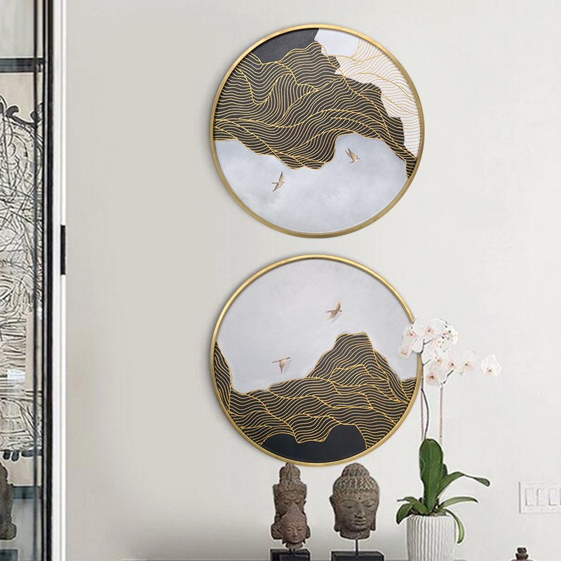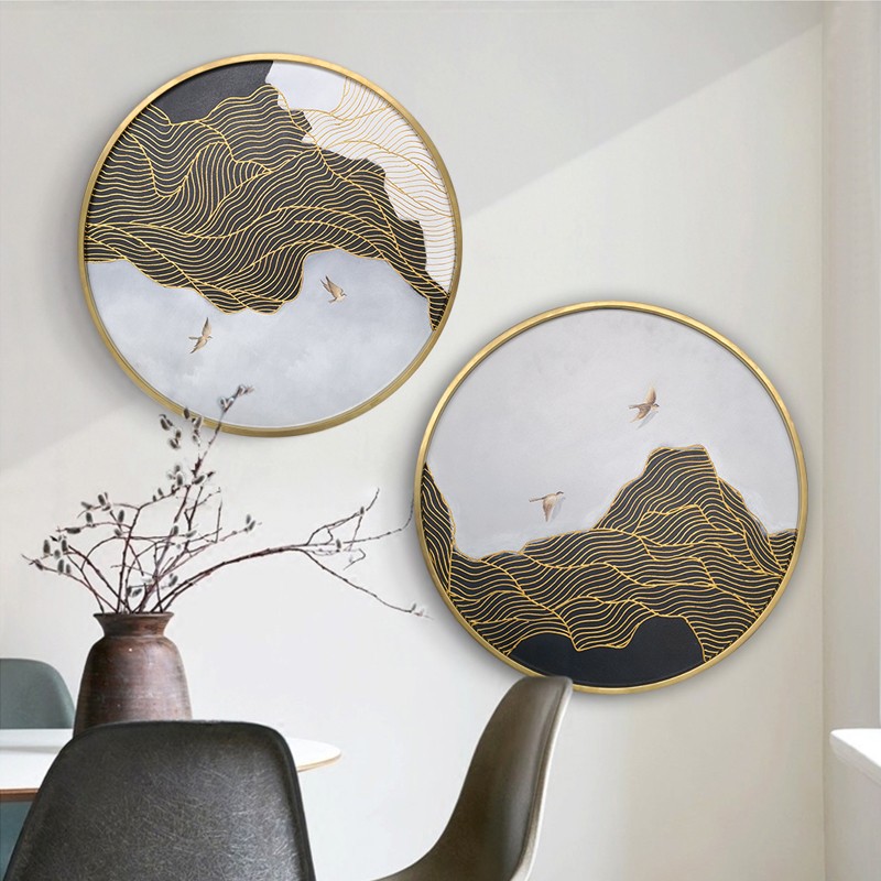 圓形裝飾畫山水畫中式客廳掛畫沙發(fā)背景墻裝飾畫中式新中式掛畫