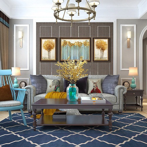 純手繪客廳三聯(lián)裝飾畫沙發(fā)背景墻輕奢植物掛畫 跳舞的星星