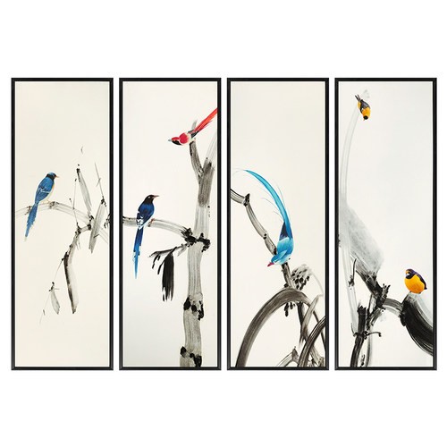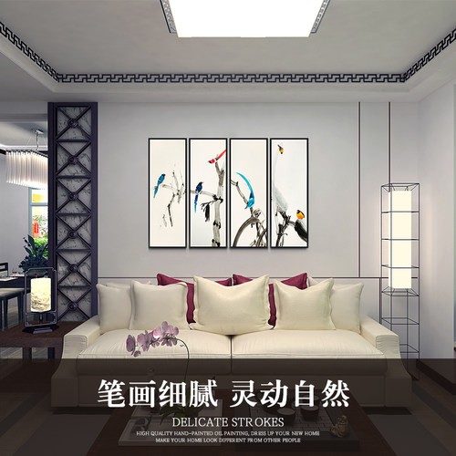 新中式手繪藝術(shù)裝飾畫(huà)客廳臥室掛畫(huà) 鳥(niǎo)語(yǔ)枝頭