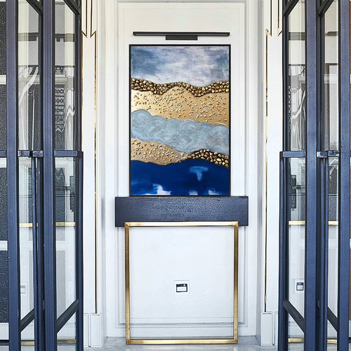 現(xiàn)代抽象純手繪油畫客廳雙拼組合畫玄關(guān)走廊豎版裝飾畫 幻靈