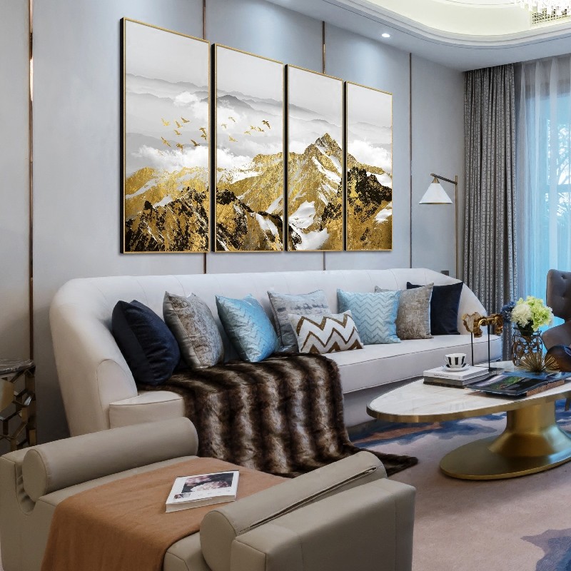 輕奢現(xiàn)代簡約客廳裝飾畫沙發(fā)背景墻組合掛畫四組合 微噴繪高清打印 山巔云海