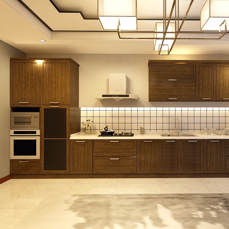 【星空梵高】現(xiàn)代簡約整體定制櫥柜石英石臺面 實木-橫紋04