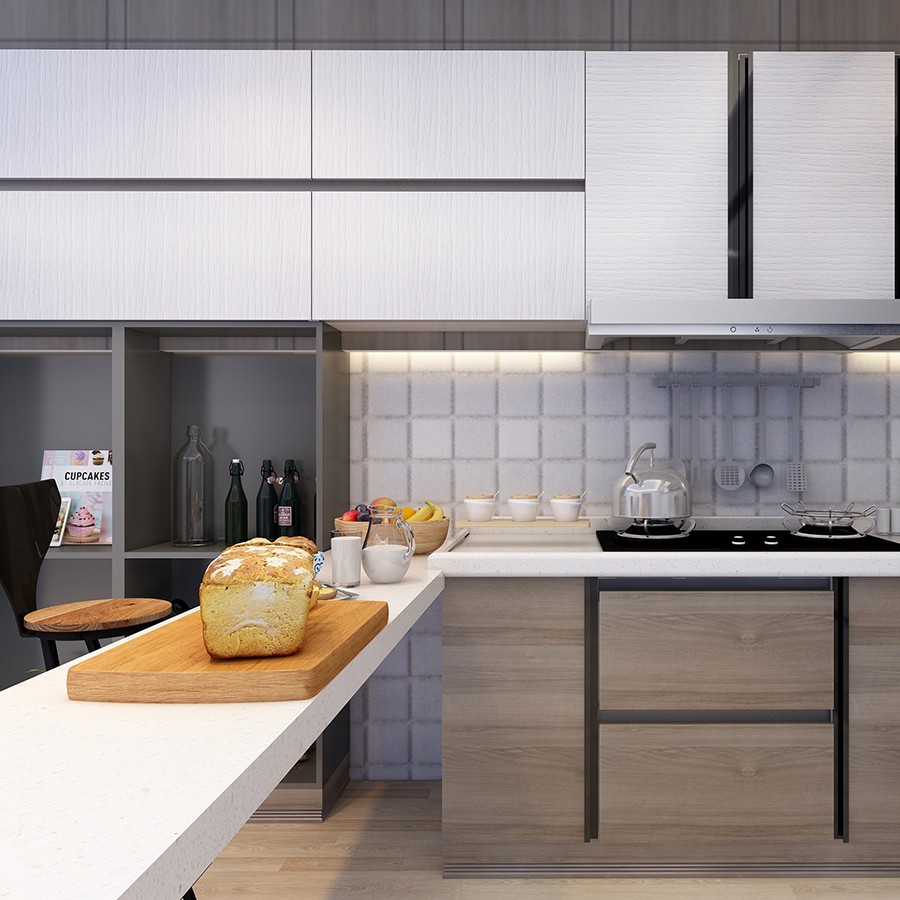 【星空梵高】現(xiàn)代簡約整體定制櫥柜石英石臺面 雙飾面-南美黃橡