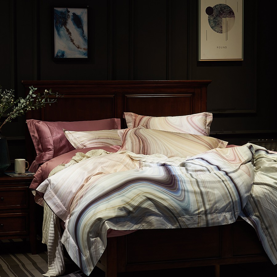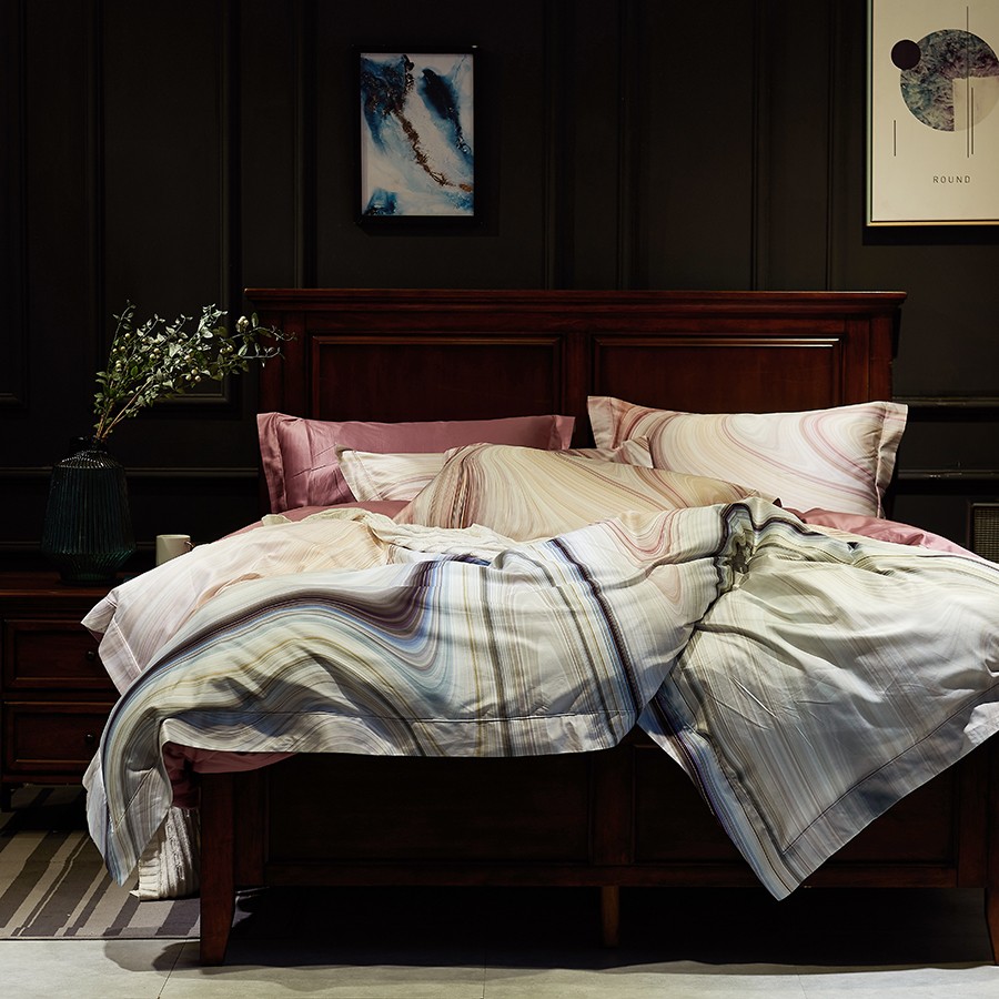 床上用品 純棉四件套 蕾絲工藝 數(shù)碼印花系列 巖棲谷隱(豆沙)