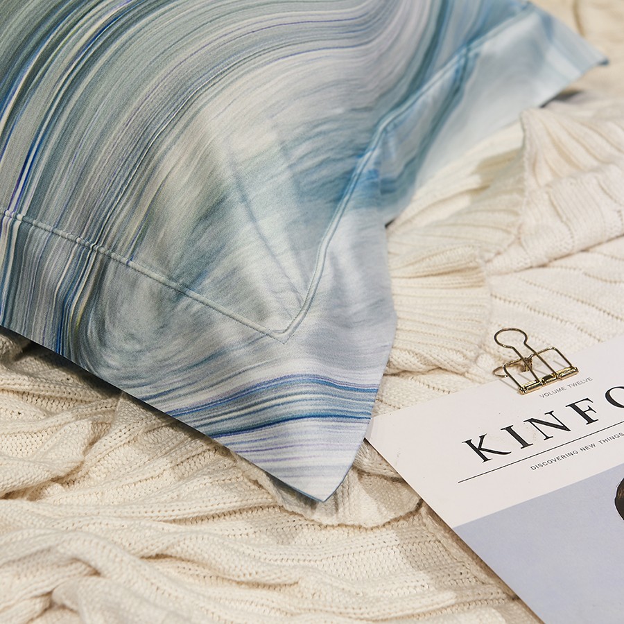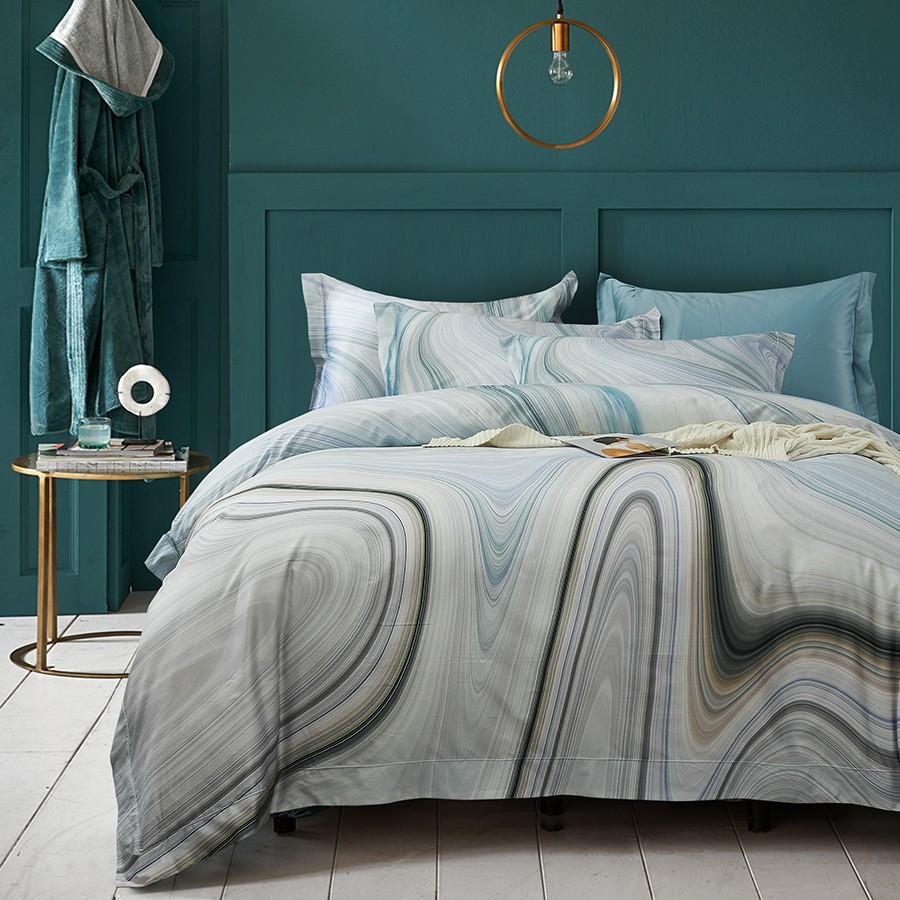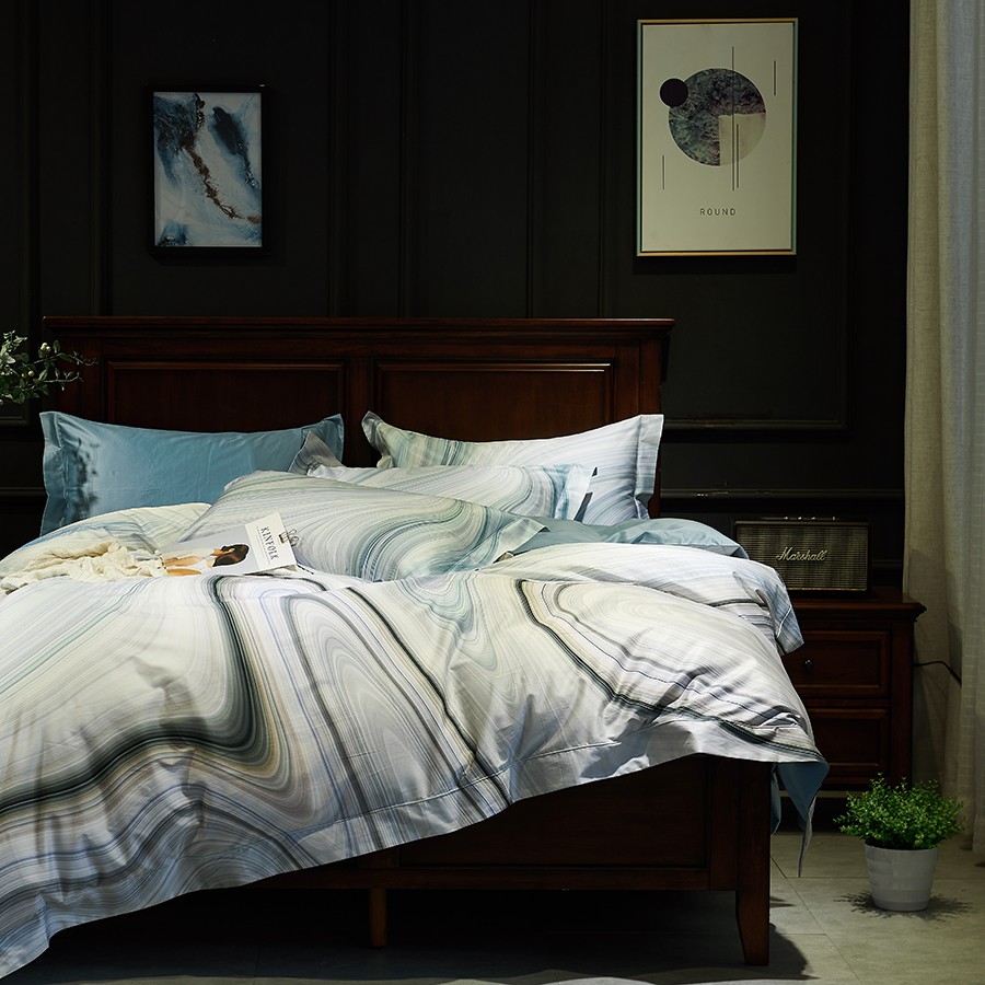 床上用品 純棉四件套 蕾絲工藝 數(shù)碼印花系列 巖棲谷隱(湖藍(lán))