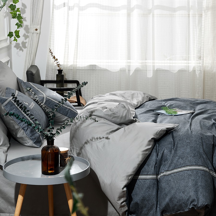 床上用品 純棉四件套 蕾絲工藝 60貢緞長(zhǎng)絨棉系列 查爾斯(灰)