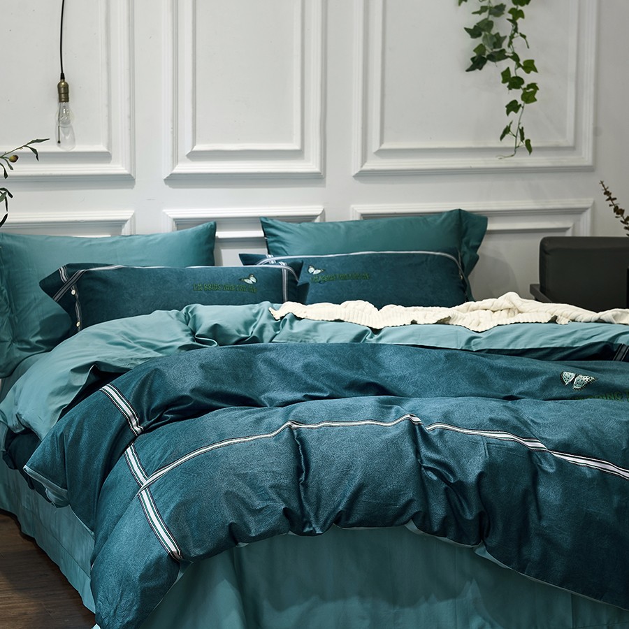 床上用品 純棉四件套 蕾絲工藝 60貢緞長(zhǎng)絨棉系列 查爾斯(綠)