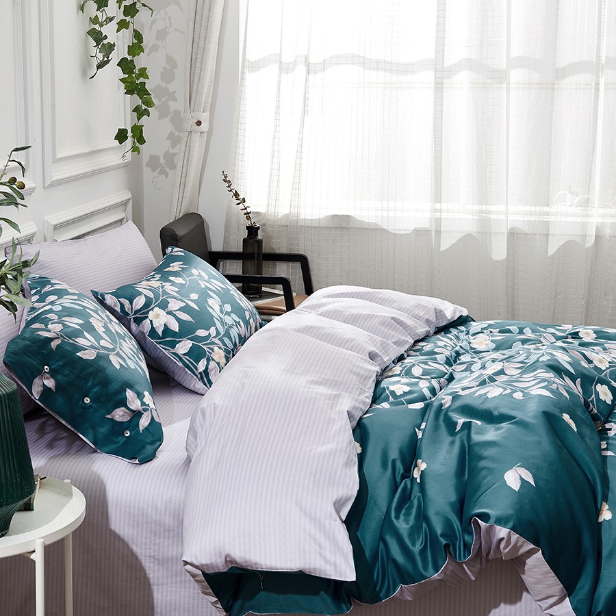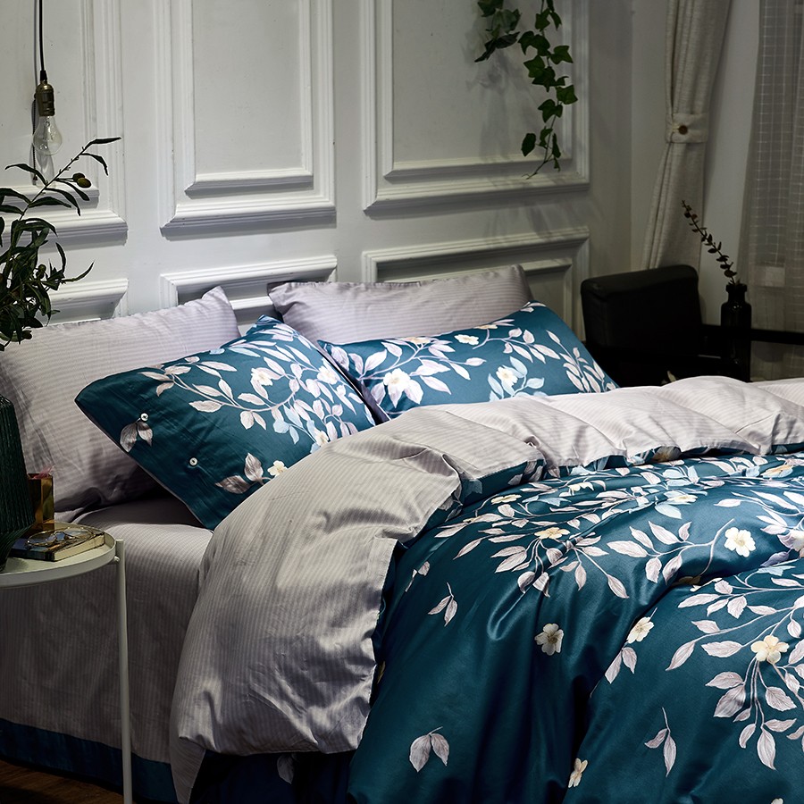 床上用品 純棉四件套 蕾絲工藝 60貢緞長(zhǎng)絨棉系列 葉雨清幽