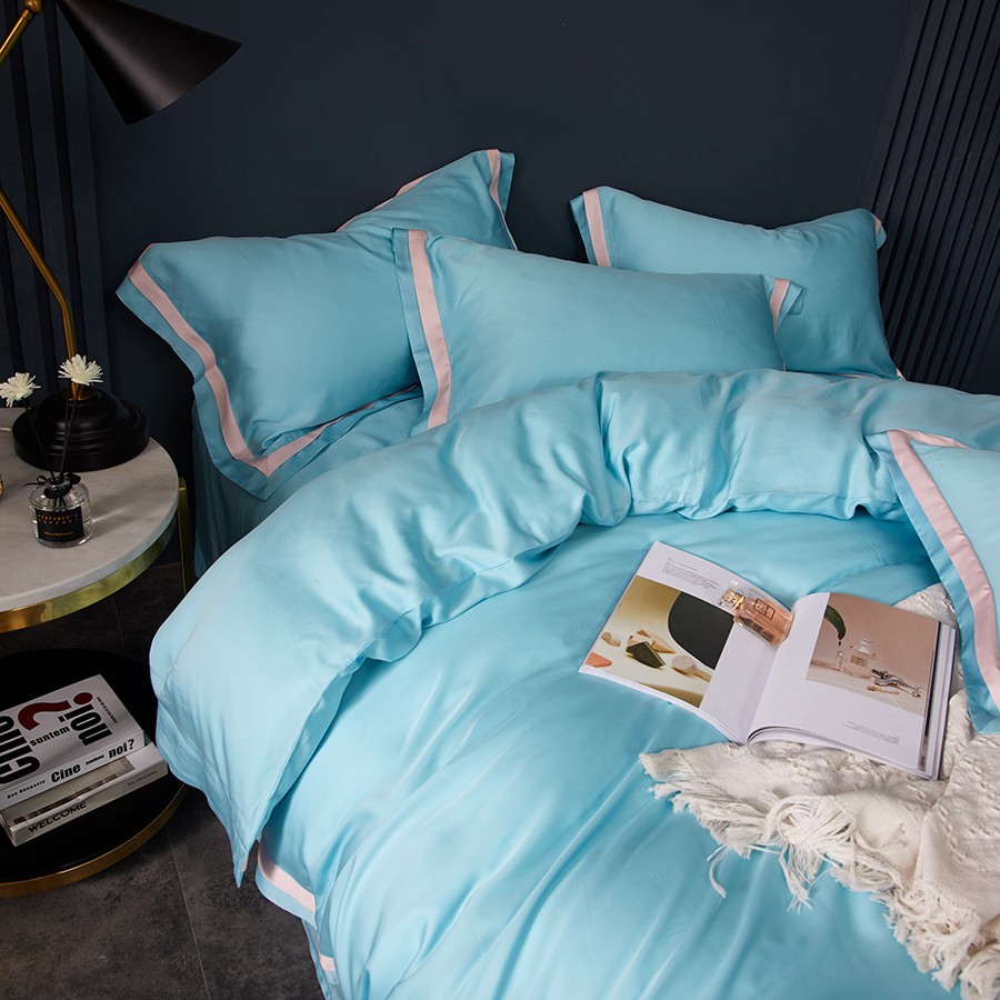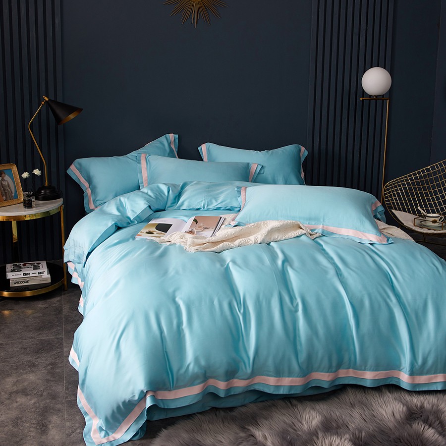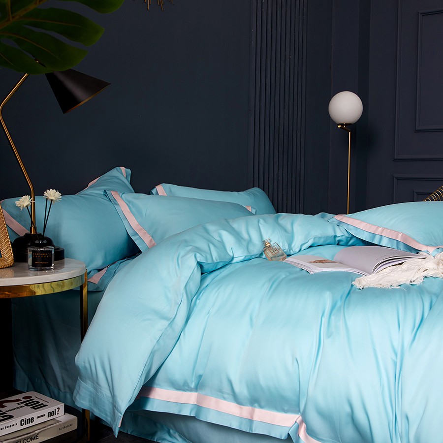 床上用品 純棉四件套 蕾絲工藝 60天絲純色工藝系列 純凈藍(lán)色