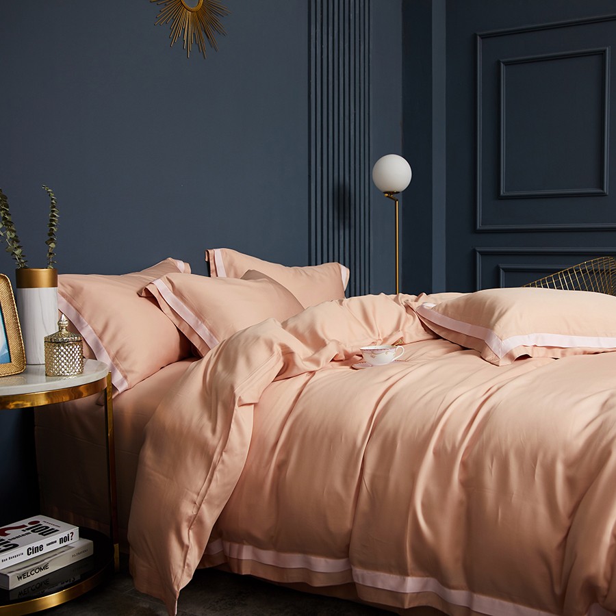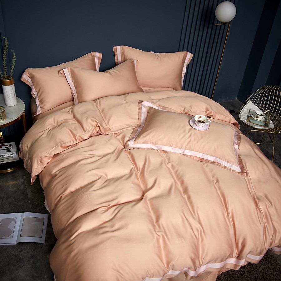 床上用品 純棉四件套 蕾絲工藝 60天絲純色工藝系列 桔粉