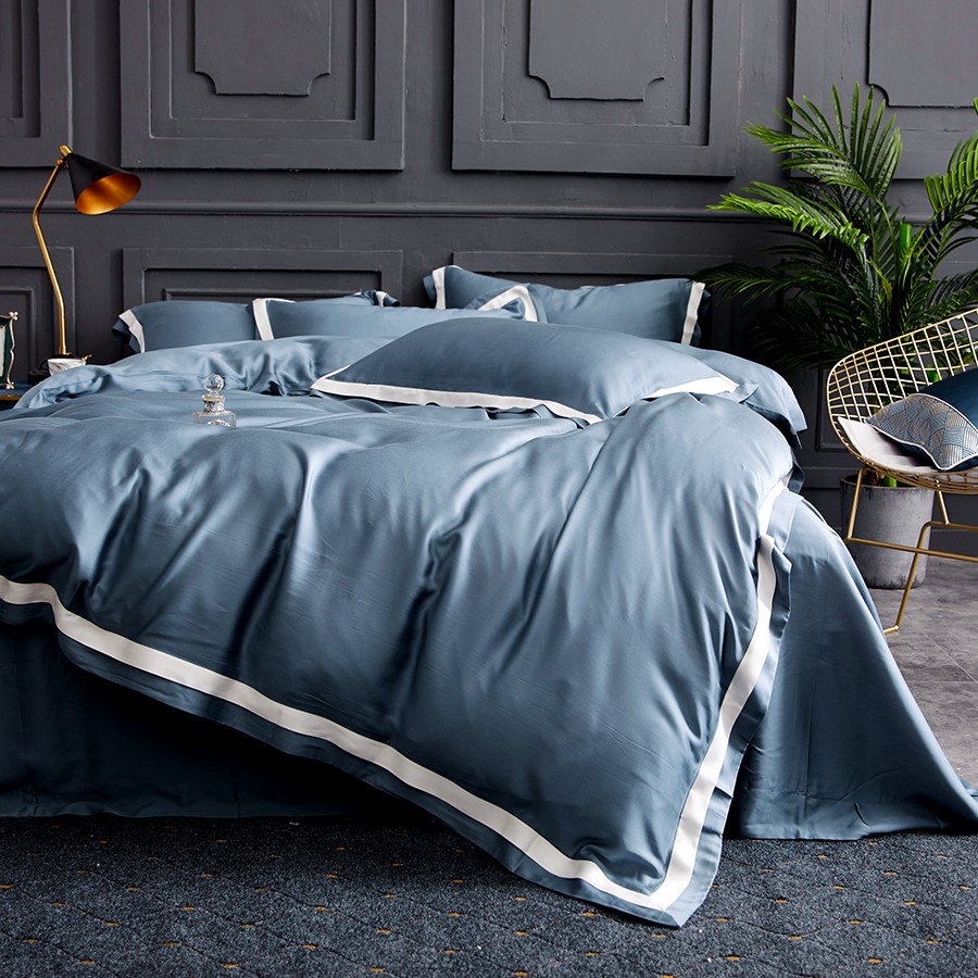 床上用品 純棉四件套 蕾絲工藝 60天絲純色工藝系列 石青