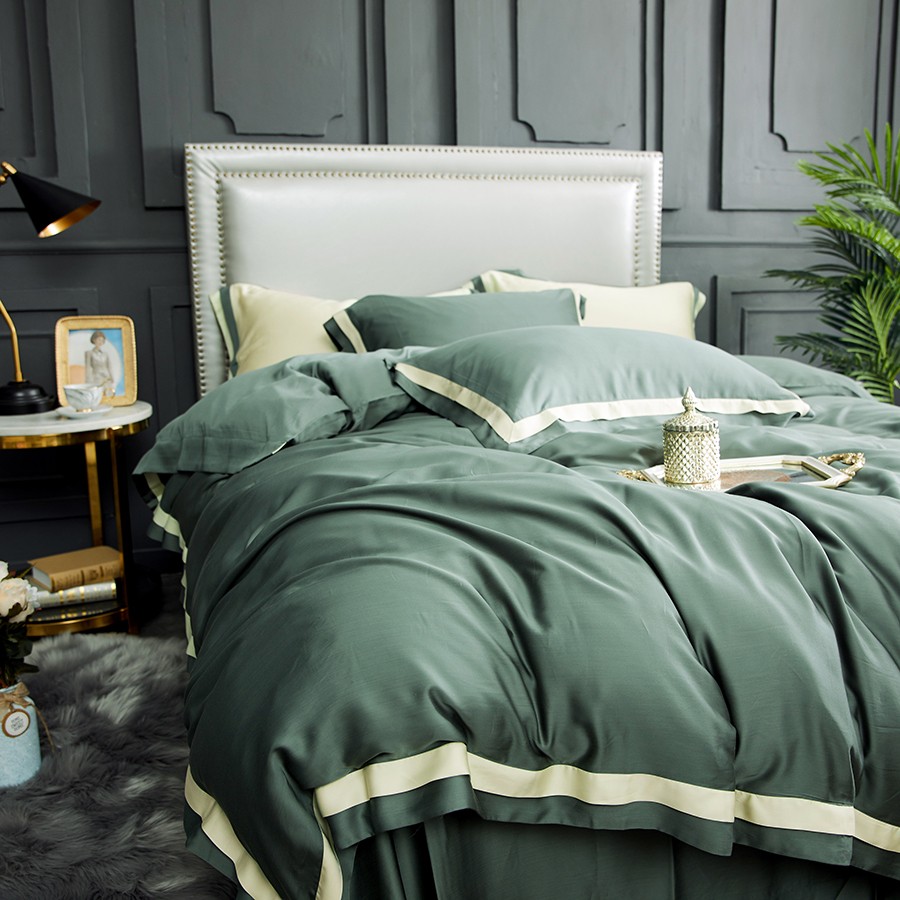 床上用品 純棉四件套 蕾絲工藝 60天絲純色工藝系列 松綠