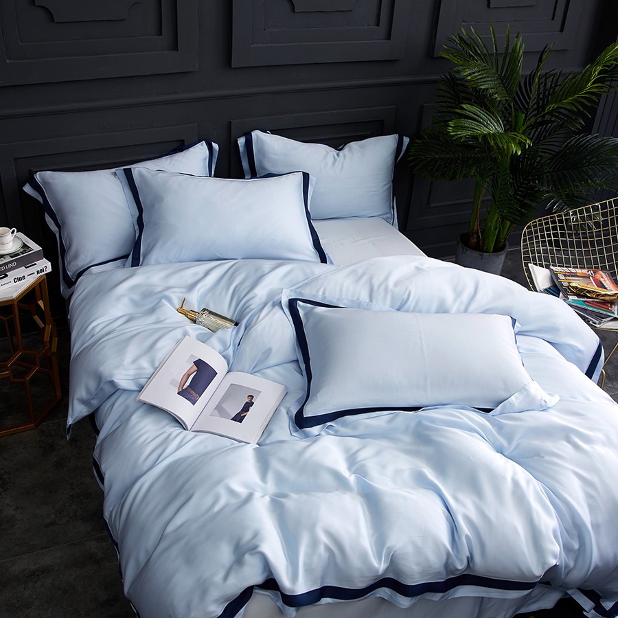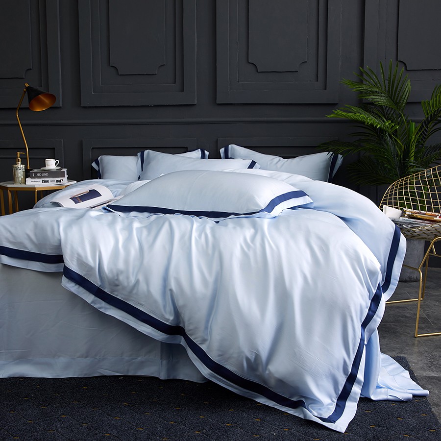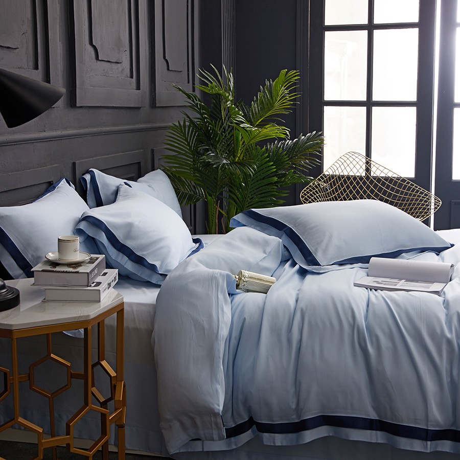 床上用品 純棉四件套 蕾絲工藝 60天絲純色工藝系列 星藍