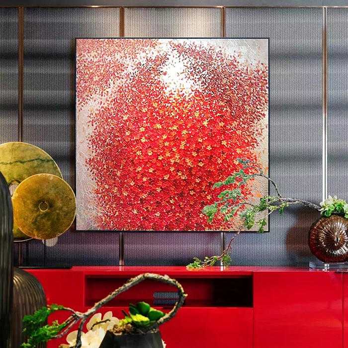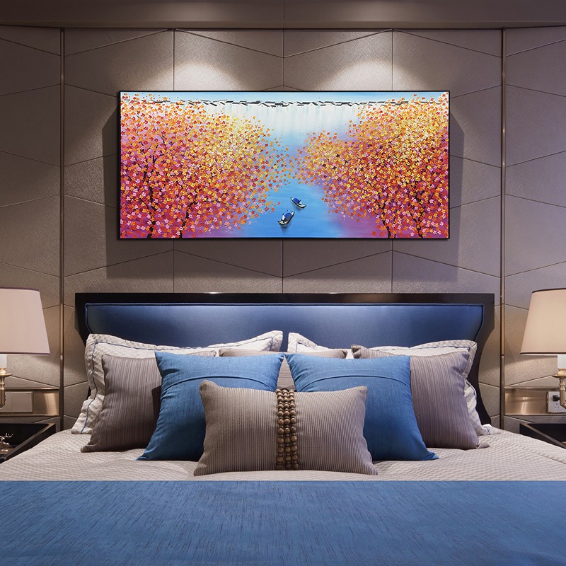 純手繪油畫 現(xiàn)代新中式客廳玄關(guān)裝飾畫風(fēng)景畫掛畫壁畫 紅色水鄉(xiāng)