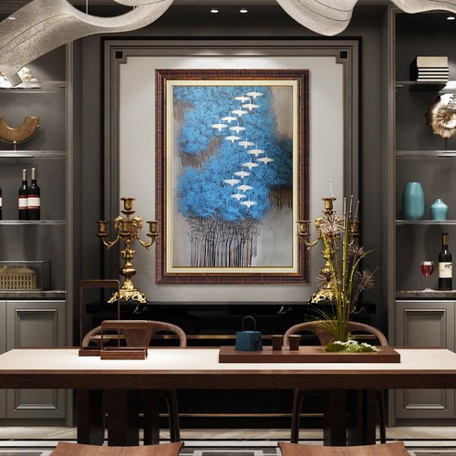 現(xiàn)代簡約抽象畫客廳掛畫臥室藝術(shù)裝飾畫手繪油畫  白雁過林