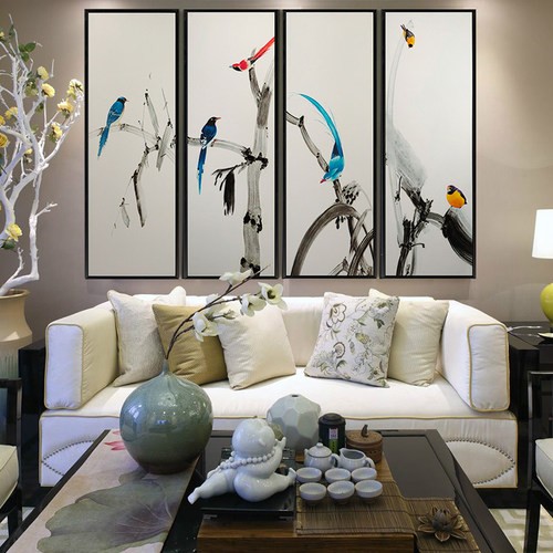 新中式手繪藝術(shù)裝飾畫客廳臥室掛畫 鳥語枝頭