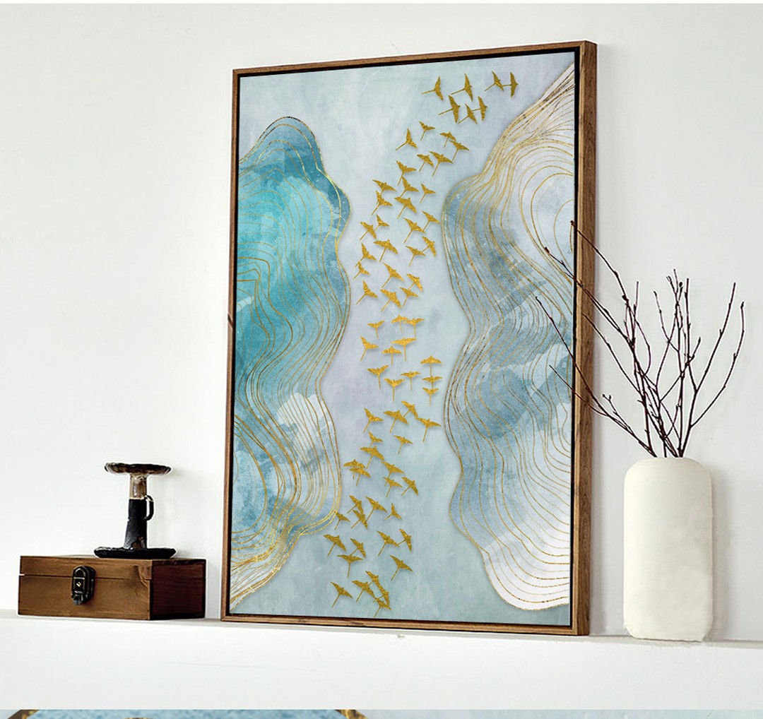 現(xiàn)代簡約抽象畫客廳掛畫臥室藝術(shù)裝飾畫手繪油畫 金雁過境