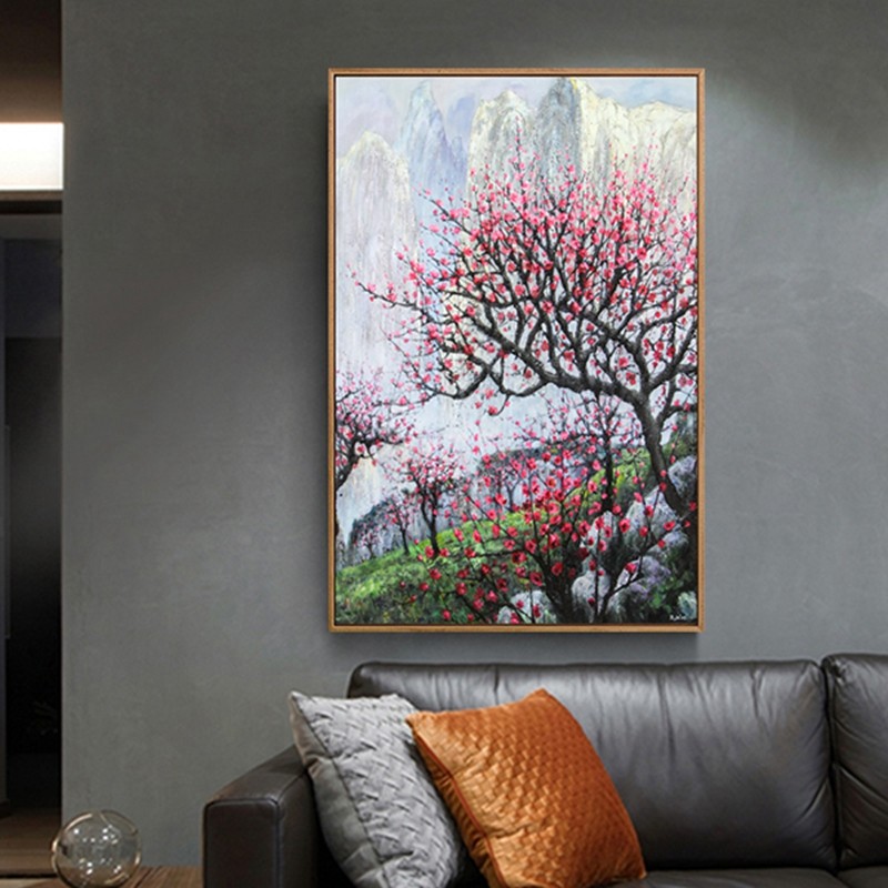 新中式客廳裝飾畫書房原創(chuàng)純手繪梅花圖臥室環(huán)保PS框掛畫 梅花圖2