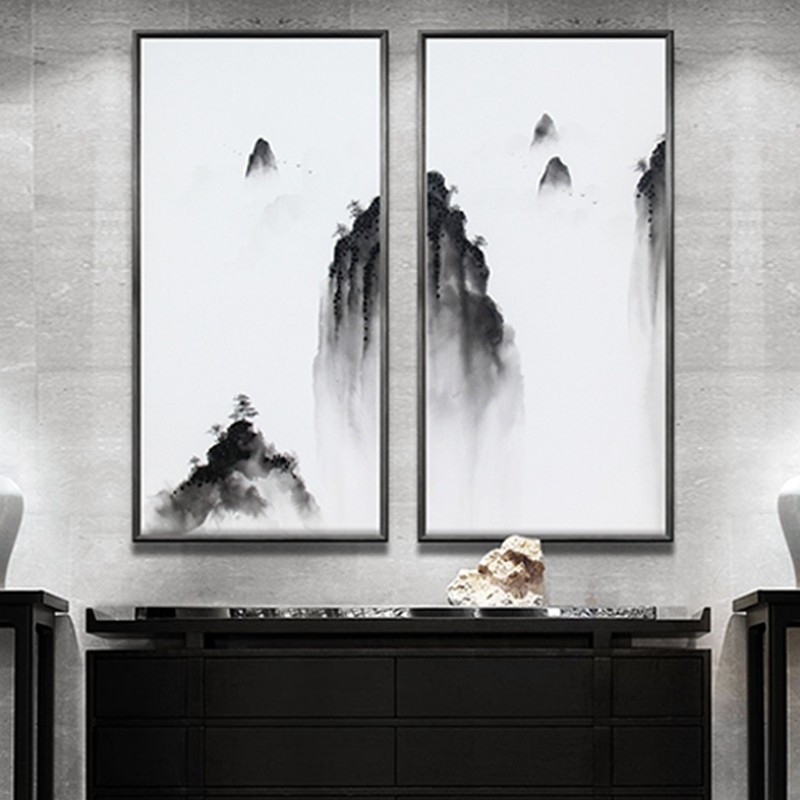 新中式客廳裝飾畫書房原創(chuàng)純手繪畫玄關(guān)環(huán)保PS框掛畫 遠(yuǎn)山