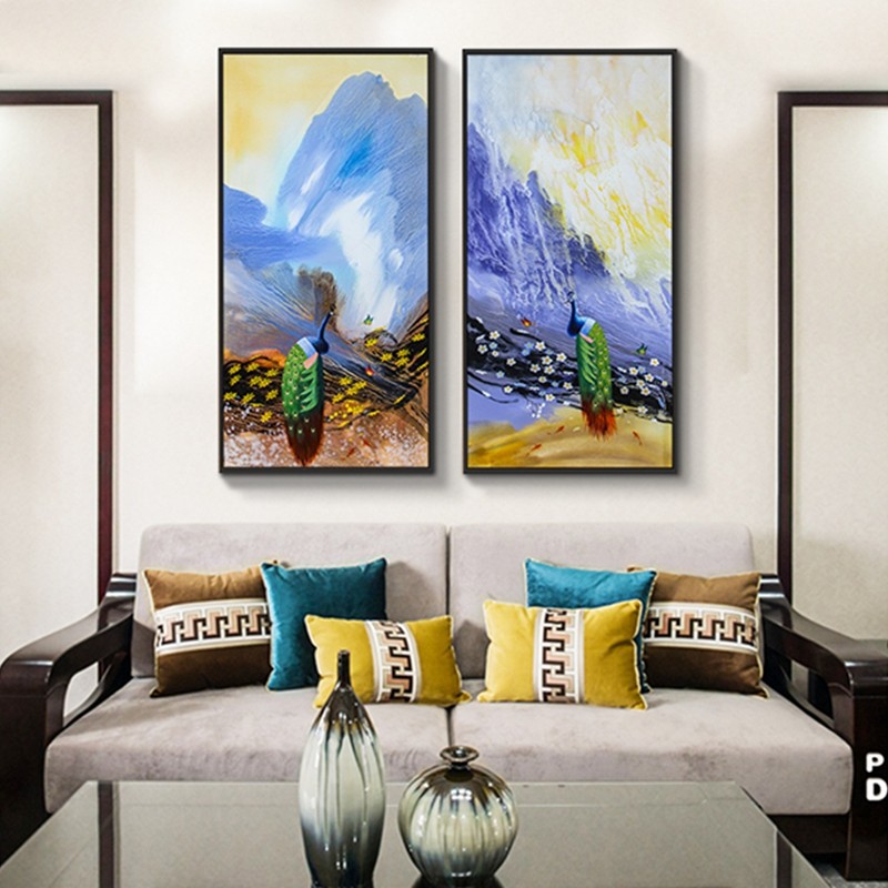 新中式客廳裝飾畫臥室原創(chuàng)純手繪禪意孔雀圖餐廳環(huán)保PS框掛畫 孔雀