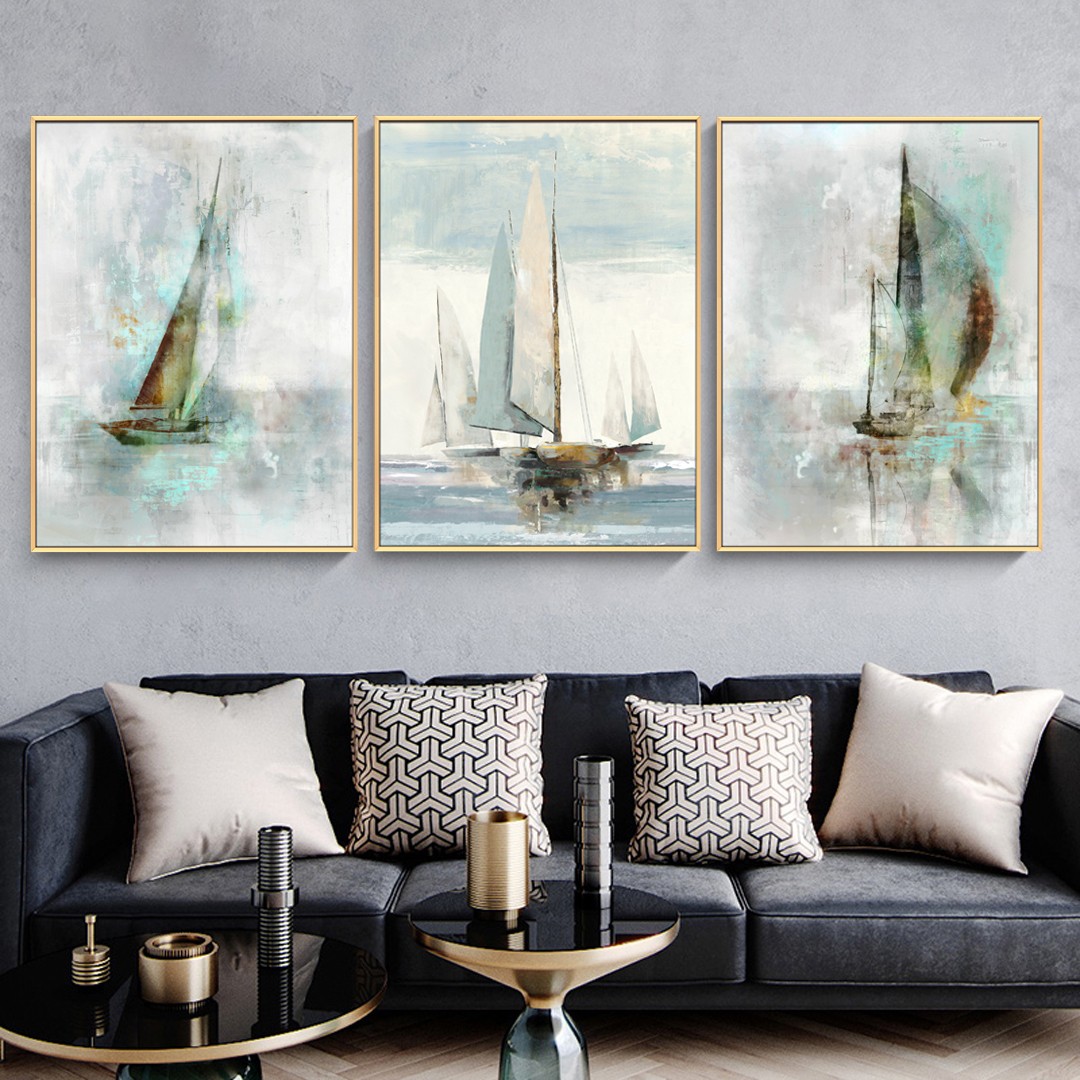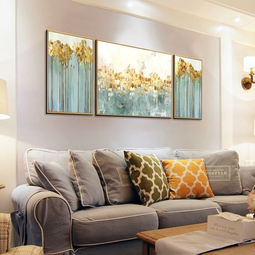 純手繪客廳三聯(lián)裝飾畫(huà)沙發(fā)背景墻輕奢植物掛畫(huà)  跳舞的星星