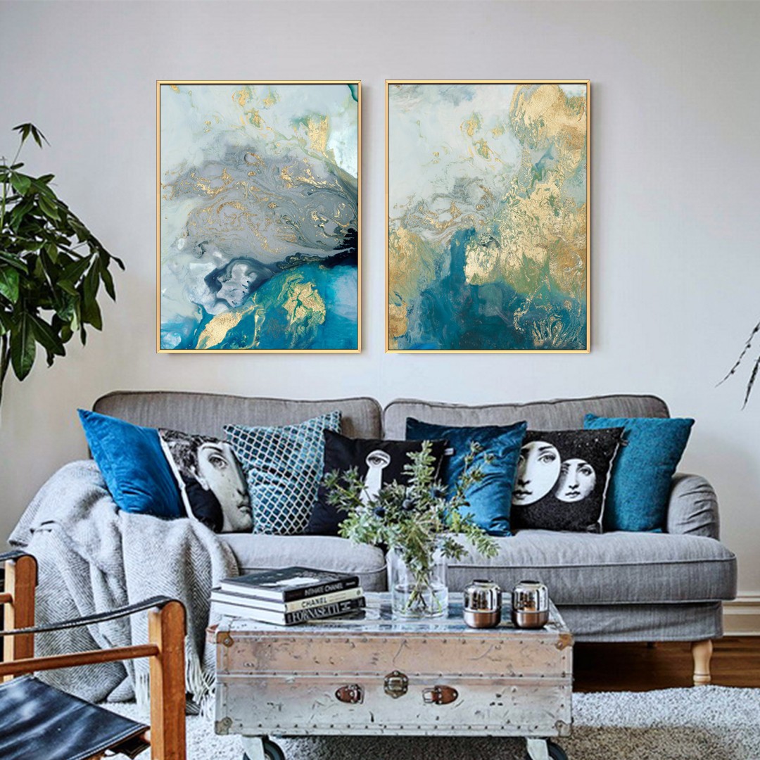 客廳沙發(fā)背景墻抽象組合裝飾畫(huà)玄關(guān)走廊晶瓷畫(huà)墻畫(huà) 鎏金盆地