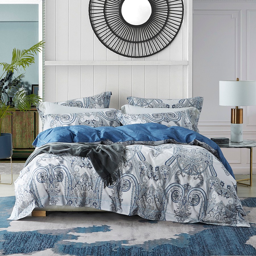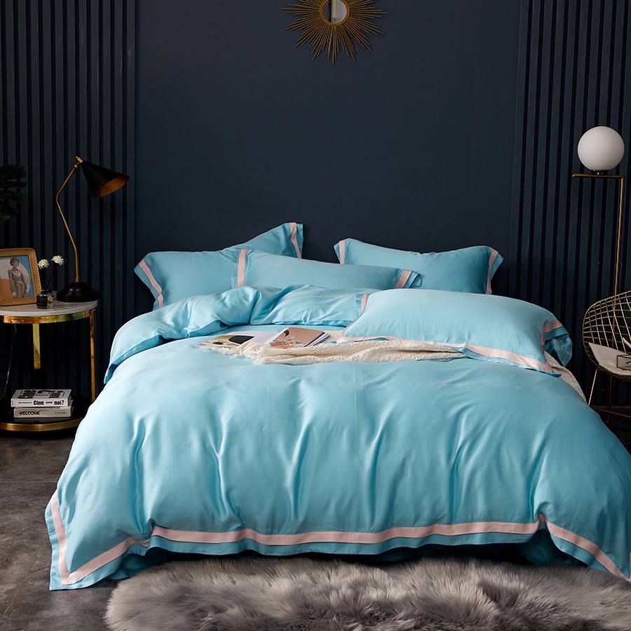 床上用品 純棉四件套 蕾絲工藝 60天絲純色工藝系列 純凈藍色