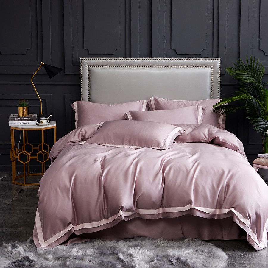床上用品 純棉四件套 蕾絲工藝 60天絲純色工藝系列 豆沙