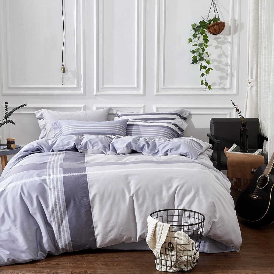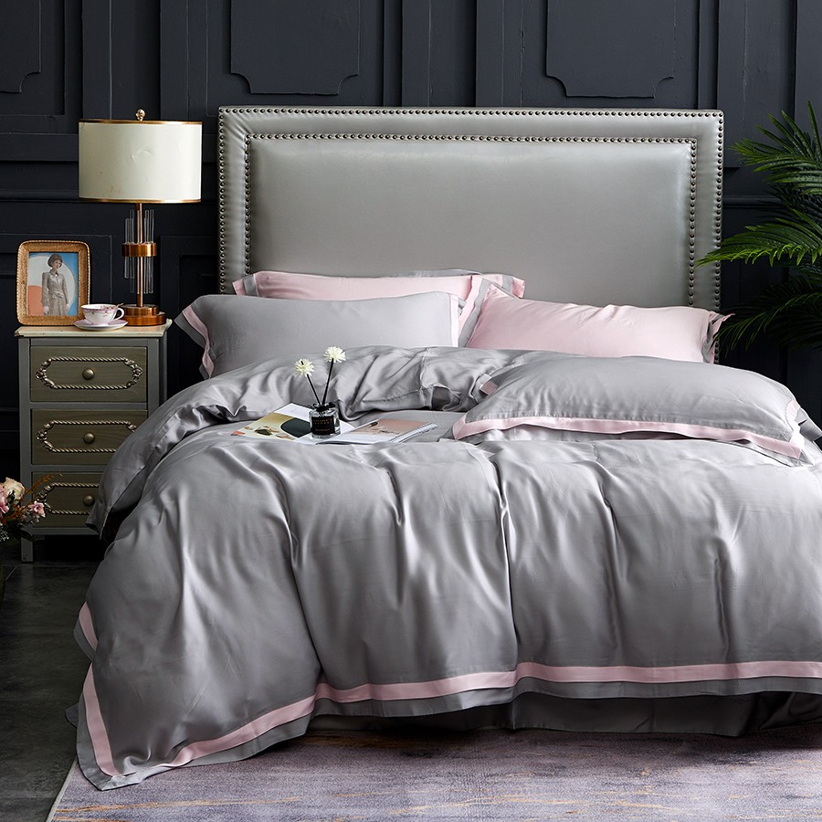床上用品 純棉四件套 蕾絲工藝 60天絲純色工藝系列 淺灰