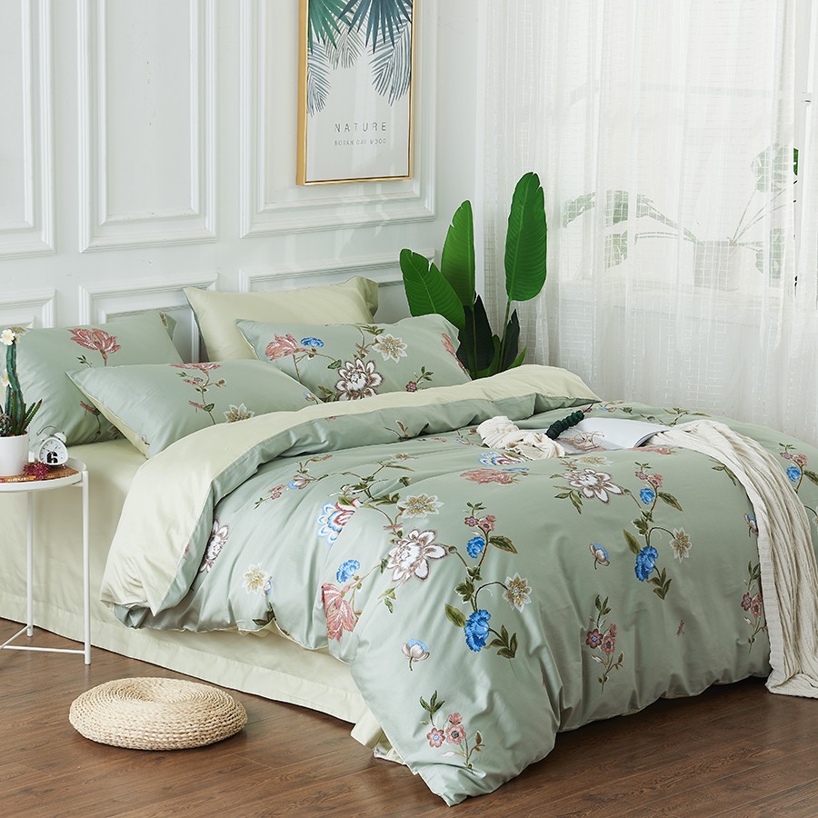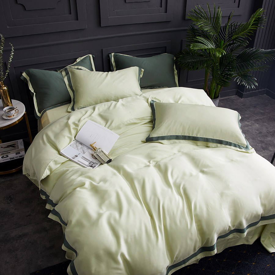 床上用品 純棉四件套 蕾絲工藝 60天絲純色工藝系列 淺綠