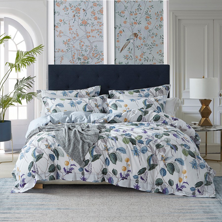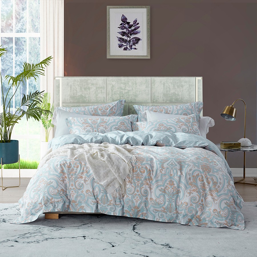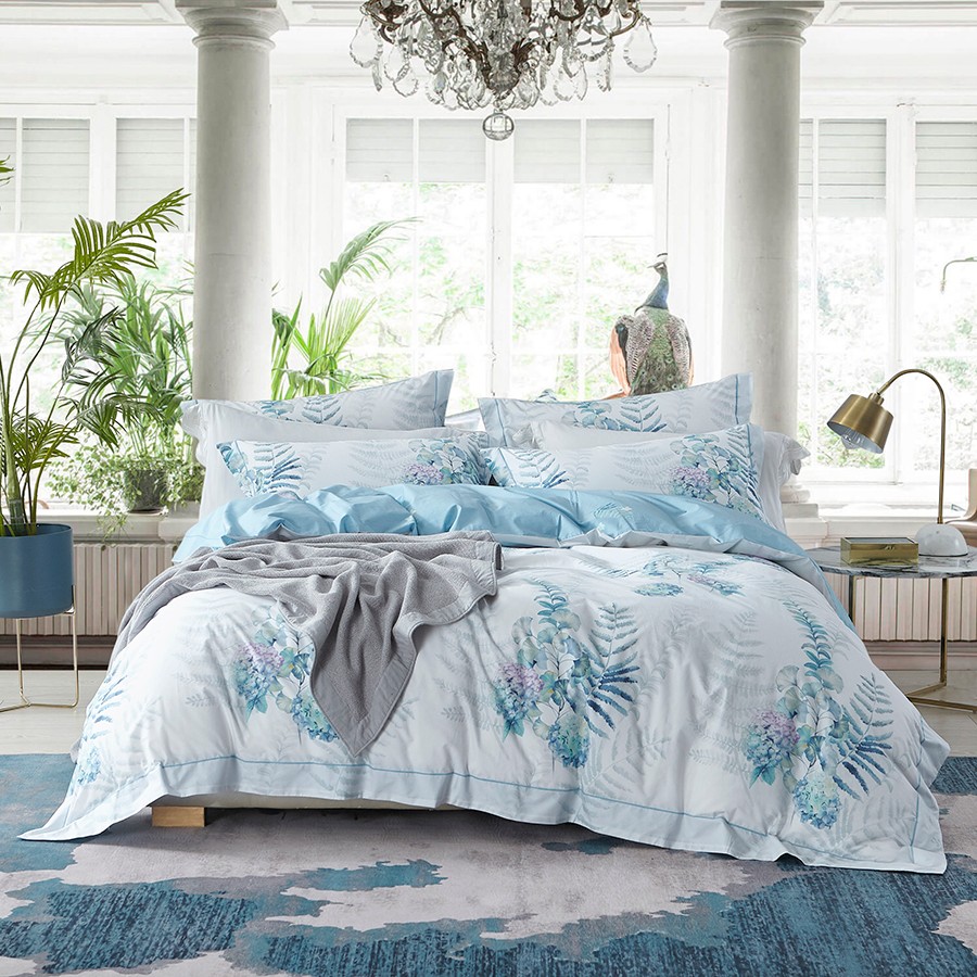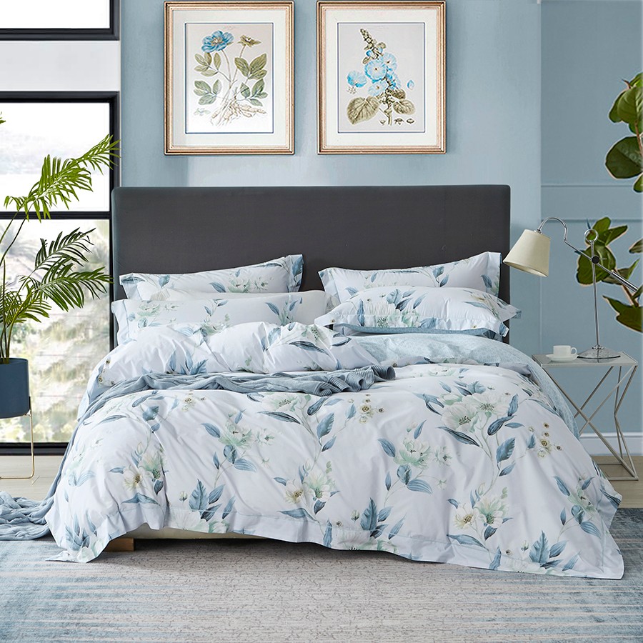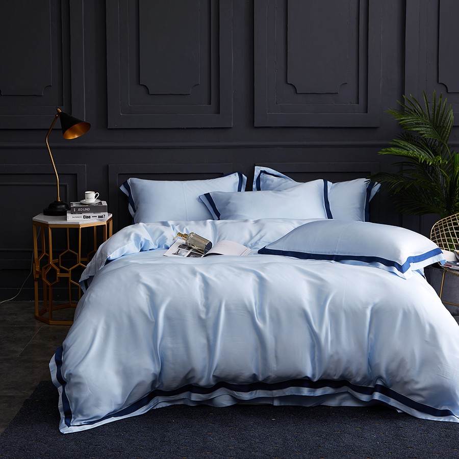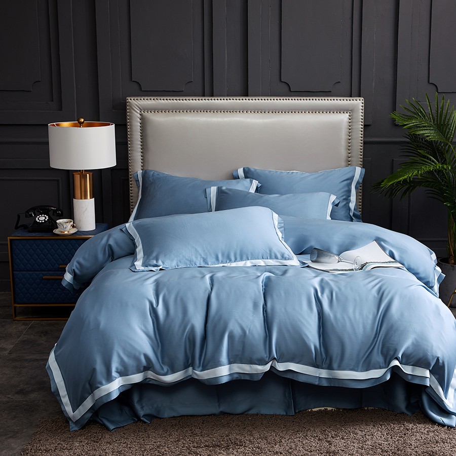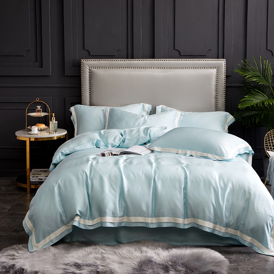 床上用品 純棉四件套 蕾絲工藝 60天絲純色工藝系列 冷冰色