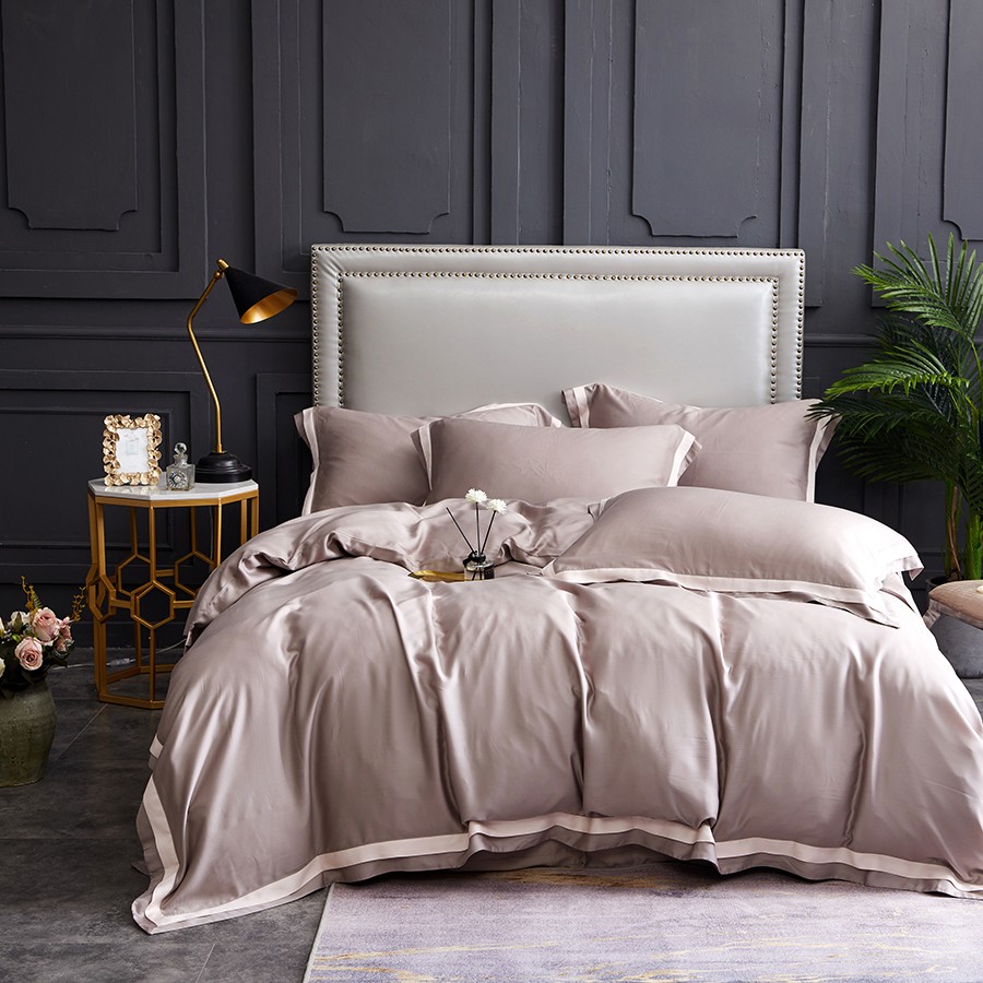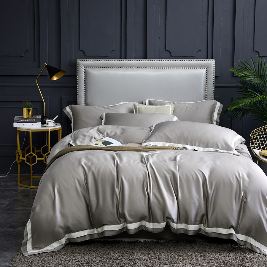 床上用品 純棉四件套 蕾絲工藝 60天絲純色工藝系列 卡其灰