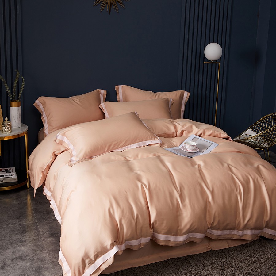 床上用品 純棉四件套 蕾絲工藝 60天絲純色工藝系列 桔粉