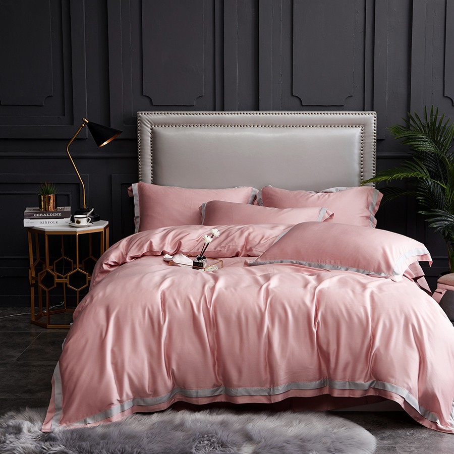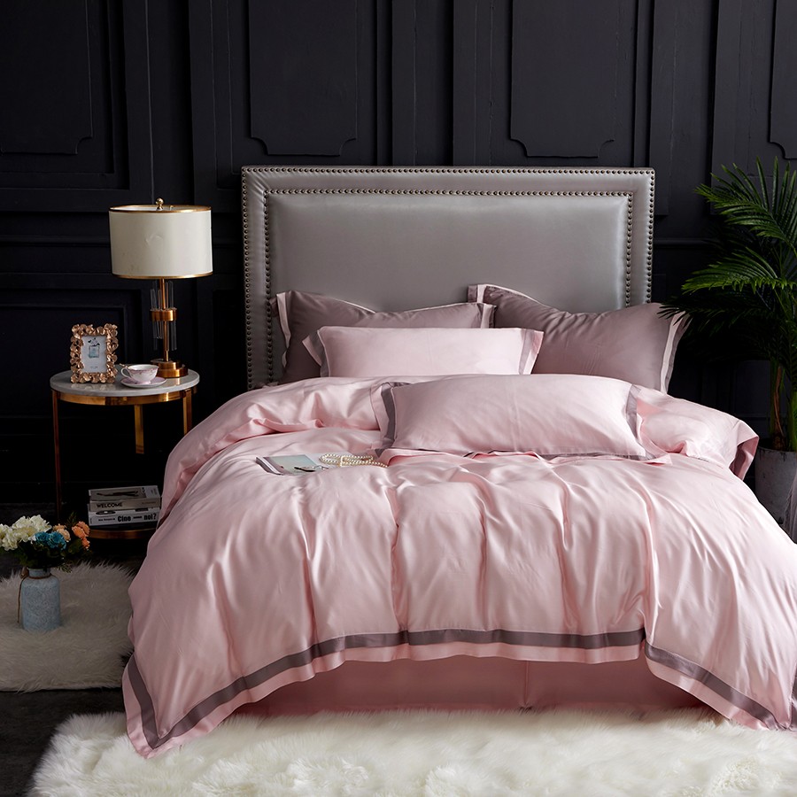 床上用品 純棉四件套 蕾絲工藝 60天絲純色工藝系列 柔粉