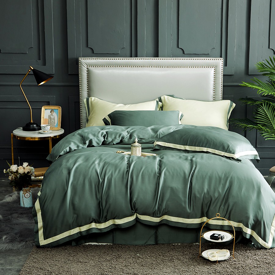 床上用品 純棉四件套 蕾絲工藝 60天絲純色工藝系列 松綠
