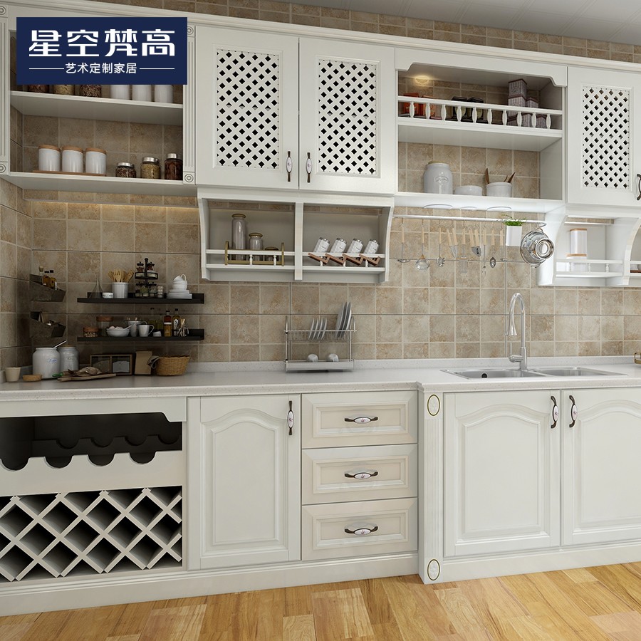 【星空梵高】現(xiàn)代簡約整體定制櫥柜石英石臺面 模壓-白色橫紋
