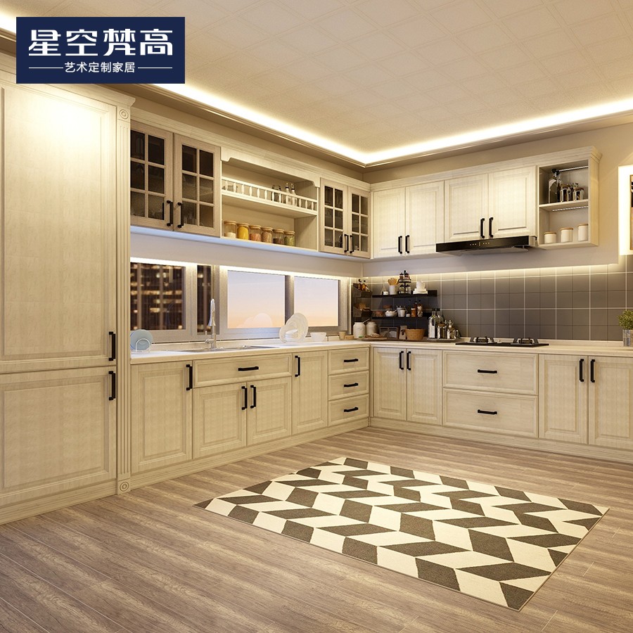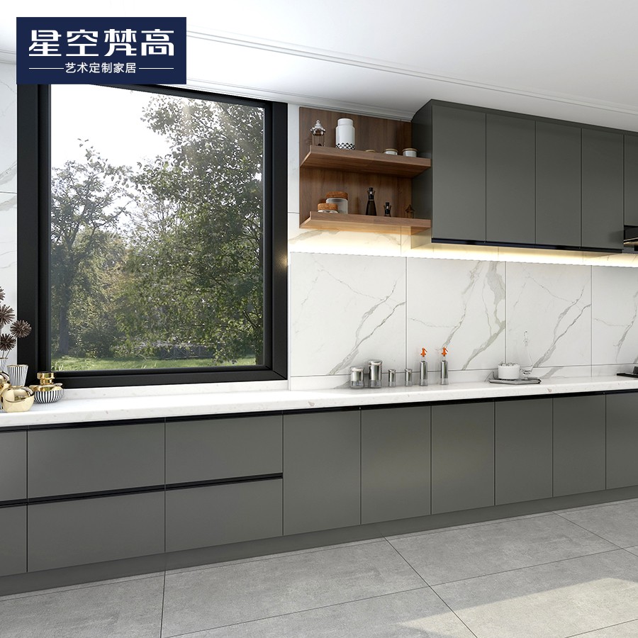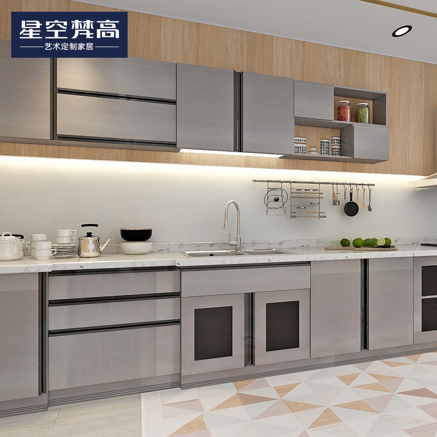 【星空梵高】現(xiàn)代簡約整體定制櫥柜石英石臺面 模壓-復(fù)古銀橡