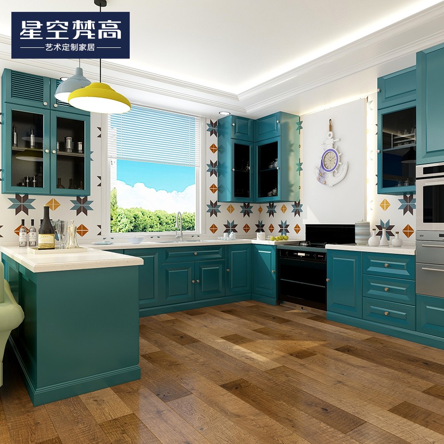 【星空梵高】現(xiàn)代簡約整體定制櫥柜石英石臺面 模壓-地中海橫紋