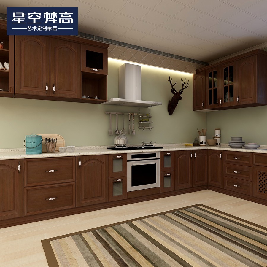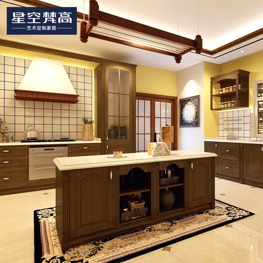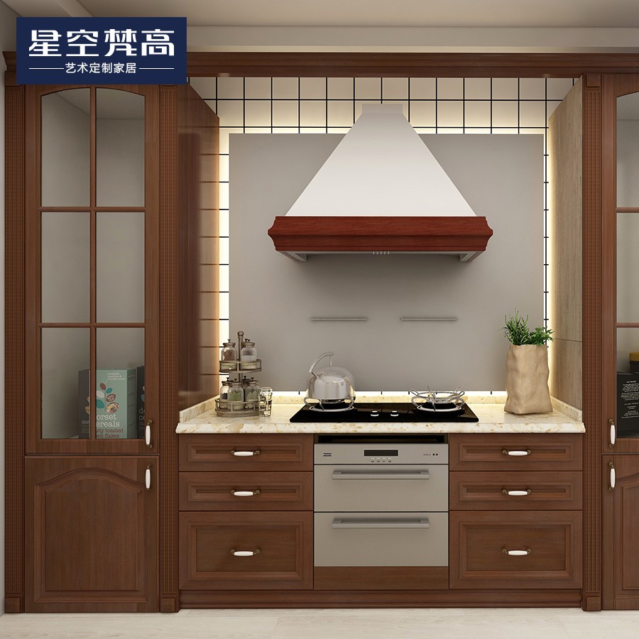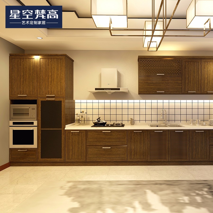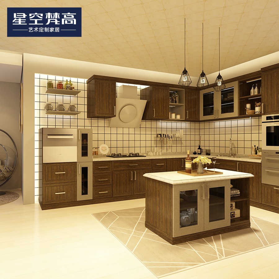 【星空梵高】現(xiàn)代簡約整體定制櫥柜石英石臺面 實(shí)木-胡桃木