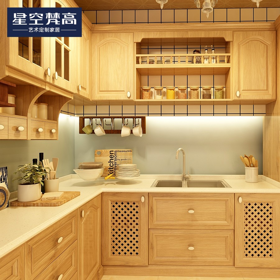 【星空梵高】現(xiàn)代簡約整體定制櫥柜石英石臺面 實(shí)木-橫紋028