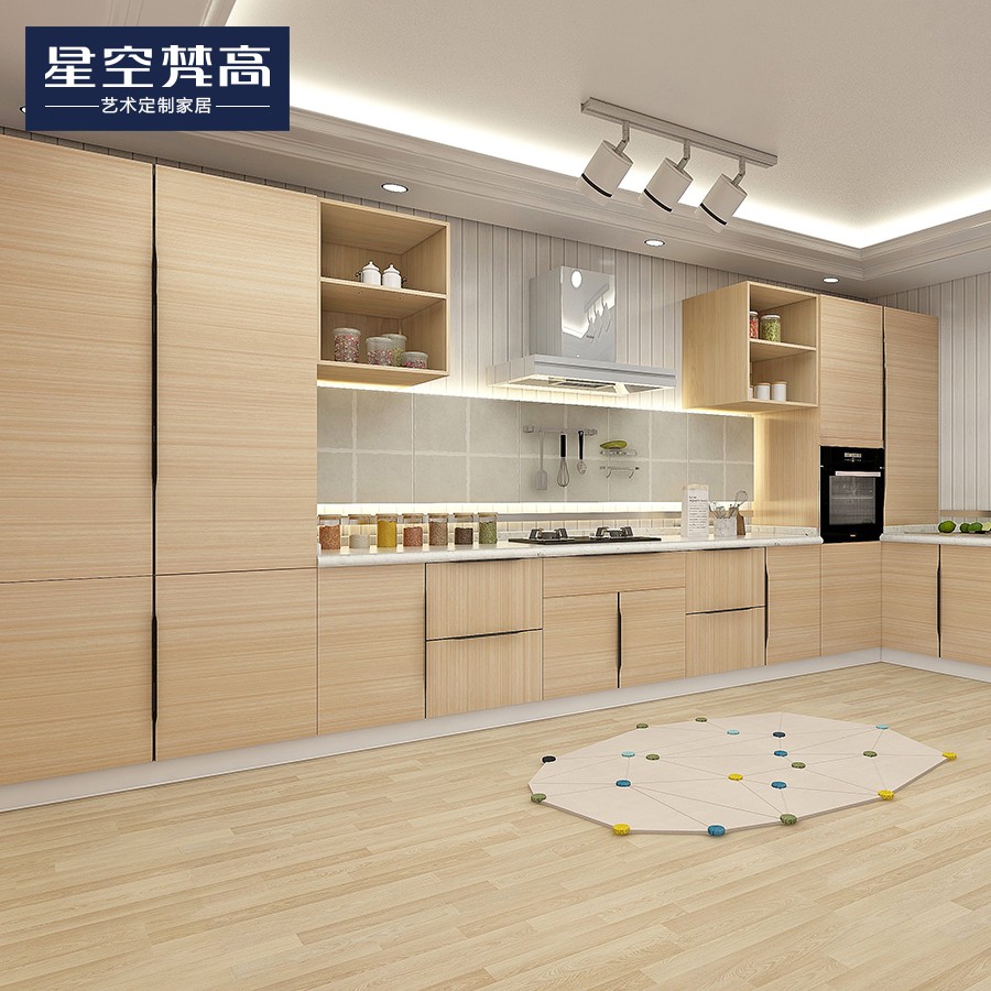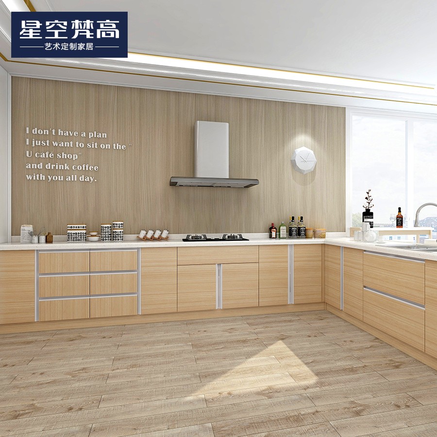 【星空梵高】現(xiàn)代簡約整體定制櫥柜石英石臺面 模壓-萬華禾香板橫紋